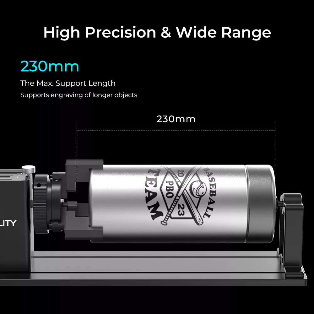 Creality Multi-Functional Laser Rotary Roller Y-axis Jaw Chuck for Engraving About this item: ๐-๐ข๐ง-๐ ๐ ๐ฎ๐ง๐๐ญ๐ข๐จ๐ง๐๐ฅ๐ข๐ญ๐ฒ: The Creality Rotary Kit Pro offers a range of functions, accommodating objects of various shapes with its adjustable jaws. Whether clamping cylindrical objects from the outside (1-110mm diameter), propping up from the inside (25-75mm diameter), or utilizing the hex stud for spheres (10-130mm diameter) or ring-shaped items (15-100mm diameter), this kit caters to diverse needs. ๐๐ซ๐๐๐ข๐ฌ๐ ๐๐ง๐ ๐ซ๐๐ฏ๐ข๐ง๐ ๐๐จ๐ง๐ญ๐ซ๐จ๐ฅ: With precise angular control of 0.225ยฐ, this kit ensures accurate engraving positions. Enjoy stable and accurate performance, carving out perfect images without any displacement. ๐๐๐ฌ๐ฒ ๐๐ฅ๐ฎ๐ ๐๐ง๐ ๐๐ฅ๐๐ฒ ๐๐๐ญ๐ฎ๐ฉ: Get started effortlessly with the Creality Rotary Kit Pro, which is ready to use straight out of the box. Simply connect it to your machine for quick and hassle-free setup. Compatible with popular engraving software such as Lightburn & LaserGRBL, you can start your projects without delay. ๐๐ข๐๐ ๐๐จ๐ฆ๐ฉ๐๐ญ๐ข๐๐ข๐ฅ๐ข๐ญ๐ฒ: The Creality Rotary Kit Pro isn't limited to Falcon/Falcon2 series models; it's compatible with 95% of laser engravers on the market. Whether you own XTOOL, ORTUR, Sculpfun, Genmitsu, LONGER, ATOMSTACKT, wotrees, ATEZR, or other brands, rest assured this kit will seamlessly integrate with your setup. ๐๐ง๐ก๐๐ง๐๐๐ ๐ ๐ฅ๐๐ฑ๐ข๐๐ข๐ฅ๐ข๐ญ๐ฒ ๐๐ง๐ ๐๐๐๐ฉ๐ญ๐๐๐ข๐ฅ๐ข๐ญ๐ฒ: Experience enhanced flexibility with the Creality Rotary Kit Pro, allowing you to tackle a wide range of engraving projects with ease. Its compatibility and versatility make it an indispensable accessory for both beginners and seasoned professionals alike. Specification: For: Creality laser engravers and cutters, and other machine Dimensions: 360*122*100mm Diameter Range: Clamp from the outside Cylindrical objects with a diameter of 1-110mm Prop up from the inner side Cylindrical objects with a diameter of 25-75mm Hex stud Sphere with a diameter of 10-130mm or rings, braclets and other ring-shaped objects with a diameter of 15-100mm Applicable Works: 1.cylinders: such as thermos cups, mugs 2.cone: such as goblets, conical bottles 3.hemispheres: bowls 4.spheres: such as crystal balls, oranges 5.Ring body: such as rings, bracelets Packing List: 1 x Creality Rotary Kit Pro Kit More Details: Payment Delivery Terms of sales About us Contact us Payment We accept payment via Payoneer. Please accomplish payment within 5 business days after you won the item. Delivery All your orders will be shipped within 1-2 business days and updated tracking info. Please make sure your address is full and correct, so that your order will be soon shipped and delivered smoothly. Most orders will adopt standard shipping, which usually needs 3-5 biz days. Any PO BOX addresses need to be confirmed if delivery or not. Terms of sales 1-month-returning for all orders after they are proved defective/damaged/faulty (videos or photos about it are preferred). Address on the package is not the return address, please email us firstly to get the correct return address. About us * Founded in 2014 by four 3D printing enthusiasts, Creality is a top global manufacturer of 3D printers. Our range of products includes DIY and resin 3D printers, 3D scanners, laser engravers, and filaments. Currently we host four brands of 3D printers: Creality as the master brand, and the three sub-brands of Ender, HALOT and Sermoon. Capitalizing on our innovatively leading technologies and products, we also offer consumer and professional printing solutions for makers, designers, schools and enterprises. Contact us Customer Service Hours: 9:00AM - 18:00PM BST (Beijing Standard Time) . You can also contact our official website customer support.