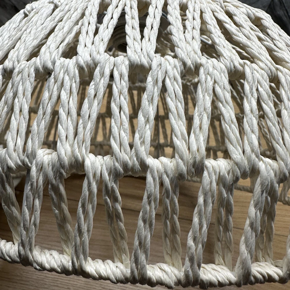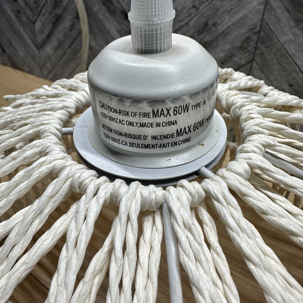 Cream Rope Woven Boho Pendant Light,Rattan Wicker Hanging Ceiling Light Fixture