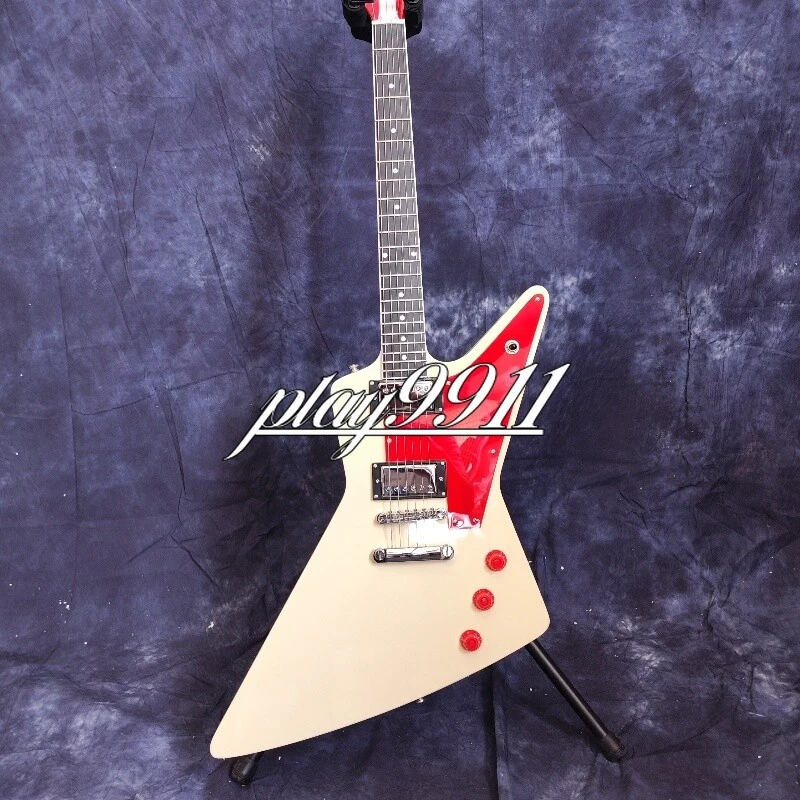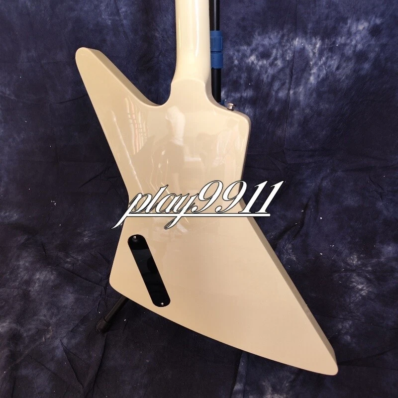 Cream White Explorer 70s Model Chrome Hardware Electric Guitar Red Pick Guard Welcome to my store. My team has been making musical instruments for many years. I will try my best to provide the best item for you! Goods condition Body:Mahogany Neck: Mahogany Fingerboard: Black Nut width: 43 mm Scale Length:24.7 inch Joint:Bolt on Hardware:Chrome Pickups:2 Humbuckers Pickup Switc h:3-ways Electronic:1 Volume 2 Tone Bridge:T-O-M ABOUT THE PICTURES The pictures are taken in our factories by ourselves. Each guitar is different from others because of the light in room or some other reasons .So there are maybe some differences between the pictures and the guitar you get. Every guitar cannot be the same in 100%, the pictures of the guitar that you see is just one of them. If you want some details about the guitar, please contact me. OUR GUARAN TEE We test every guitar (such as buzzing, sound test, workmanship) is in good condition before it is shipped out. When you receive the guitar, if you meet some problems like readjustment the strings or you are not happy with our guitar, please let me know immediately and we will try our best to meet you satisfaction. CUSTOMIZED CEN TER Head stocks are not pictured per our policy. Custom Head stocks are available upon request from our factory custom shop. Please contact us for details. All customized products are non-returnable. SHIPPIN G Once payment has been confirmed, your item will be shipped within 3 or 30 business working days. That depends on specific goods deliver ways.The speed also base on Custom Clearance Speed, which we can't control .So if you want this for your gig next weekend it probably wont make it on time, so please keep that in mind when ordering. PACKI NG We use the carton which is designed for the International transport to package the products you ordered. And we can guarantee the items will not be damaged in the way of transportation. RETURN PO LICY If the item you received is broken or defective, please contact me immediately and return it within 3 days after you received it with the original or approved packaging. After we received it, we will give you a Full-Refund or Exchange. Buyers are responsible for return shopping costs. If you want to replace it, we will send a new one to you and then forward a shipping label. For missing or replacement parts(from the original order), we will ship them to you. Please read the RETURN POLICY before you order it! FEEDBA CK Thank you for your great comments and feedback. (a) When you are satisfied with your purchase, we sincerely hope that you can give us a positive feedback. Again, we will give you a positive feedback. (b) If you are dissatisfied with your purchase, please contact us submitting a neutral or negative feedback. We will respond to you in 24 hours and work with you until you are satisfied.