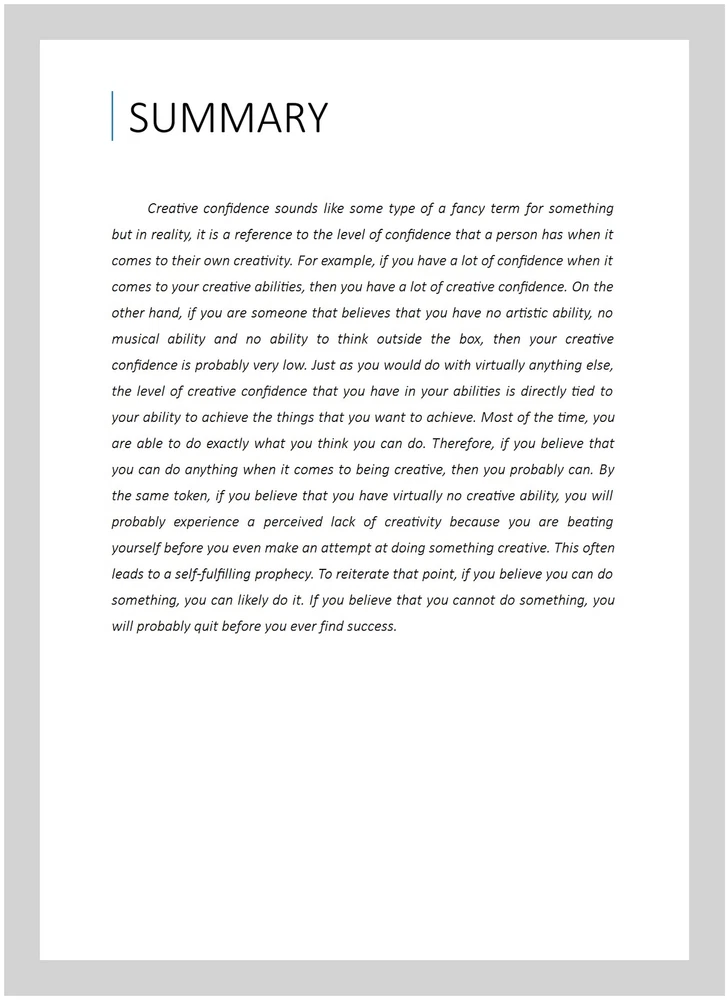 Creative Confidence : How to Unleash Your Confidence, Be Super Innovative & Design Your Life in 30 Days, Paperback by Blokehead, ISBN 1503282740, ISBN-13 9781503282742, Like New Used, Free shipping in the US Creative confidence sounds like some type of a fancy term for something but in reality, it is a reference to the level of confidence that a person has when it comes to their own creativity. For example, if you have a lot of confidence when it comes to your creative abilities, then you have a lot of creative confidence. On the other hand, if you are someone that believes that you have no artistic ability, no musical ability and no ability to think outside the box, then your creative confidence is probably very low. Just as you would do with virtually anything else, the level of creative confidence that you have in your abilities is directly tied to your ability to achieve the things that you want to achieve. Most of the time, you are able to do exactly what you think you can do. Therefore, if you believe that you can do anything when it comes to being creative, then you probably can. By the same token, if you believe that you have virtually no creative ability, you will probably experience a perceived lack of creativity because you are beating yourself before you even make an attempt at doing something creative. This often leads to a self-fulfilling prophecy. To reiterate that point, if you believe you can do something, you can likely do it. If you believe that you cannot do something, you will probably quit before you ever find success.