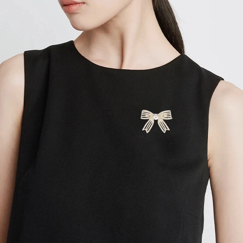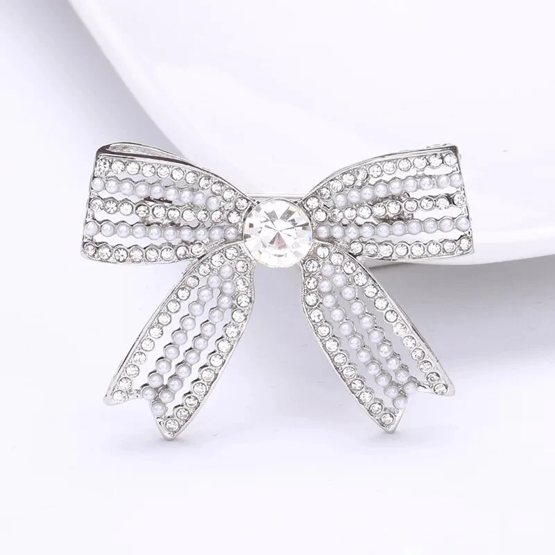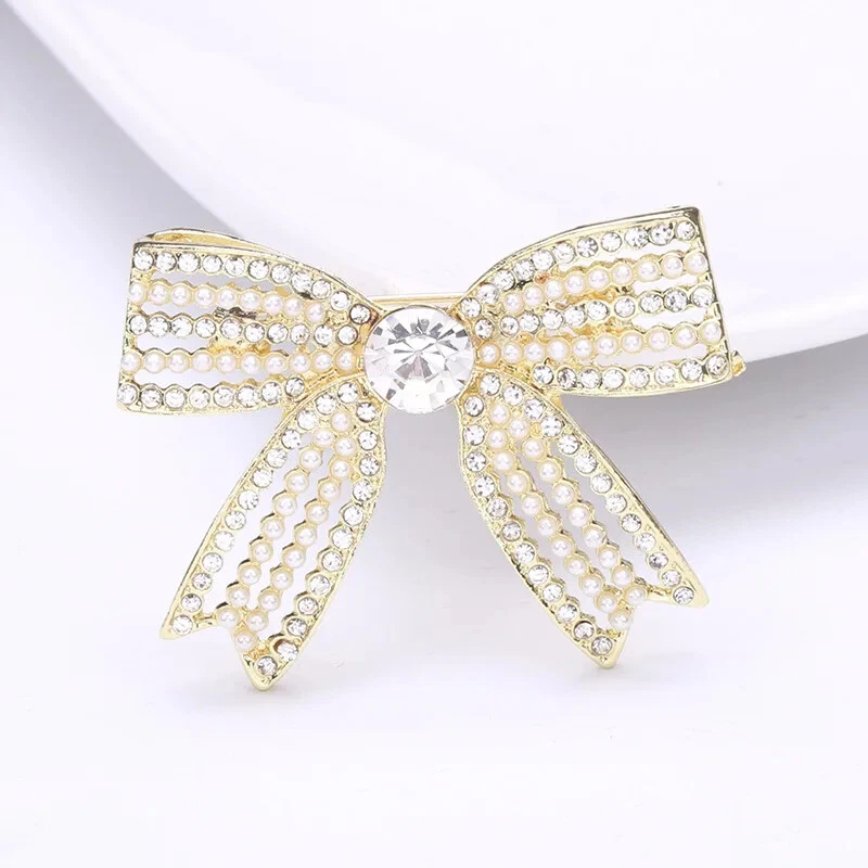 Creative Pearl Bow Brooch for Women Fashion Simple Pin Small Suit Accessories