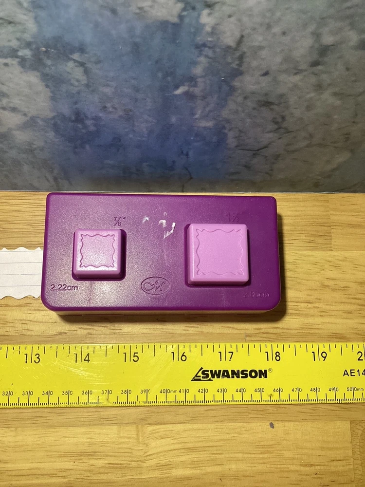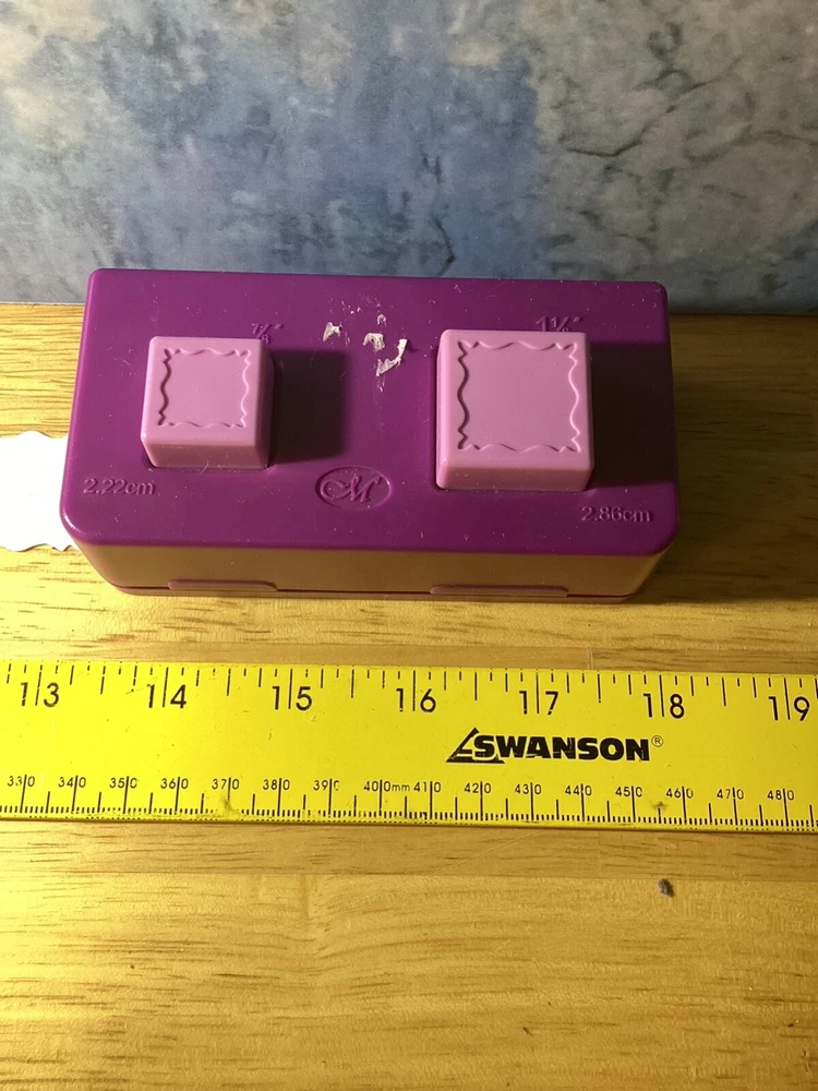 YOUR BUYING Creative memories Craft Punch Scrapbook shapes "square frame " has scratches on side from prior owner removing their name TERMS OF SALE: DESCRIPTIONS: ALL INFO AND PHOTOS THAT ARE AVAILABLE ARE LISTED. IF YOU HAVE QUESTIONS ASK BEFORE PURCHASING THE ITEM(S). LIKE ANY MAJOR RETAILER WE DO NOT OFFER MEASUREMENT SERVICES. ALL FACTORY SIZES ARE LISTED. RETURNS: NO RETURNS OR EXCHANGES. IF WE TOOK RETURNS OR EXCHANGES, WE WOULD NOT BE ABLE TO OFFER THE GREAT PRICES WE DO. IF YOUR HARD TO FIT OR PLEASE WE MAY NOT BE YOUR BEST CHOICE.DRAMA FREE ZONE HERE. DOMESTIC SHIPPING: WE SHIP AS SOON AS PAYMENT HITS OUR BANK. USALLY 2 TO 3 BUSINESS DAYS. EBAY ESTIMATED TIME OF ARRIVAL IS JUST THAT AN ESTIMATE AND NOT A GUARANTEE. INTERNATIONAL SHIPPING: WE SELL WORLDWIDE THRU EBAY INTERNATIONAL SHIPPING SERVICE ONLY. PAYMENTS: ALL PAYMENTS ARE DUE AT TIME OF PURCHASE THRU EBAY PAYMENT SERVICES ONLY. NO EXCEPTIONS. PHOTOS: COLORS OF ITEMS MAY VARY FROM WHAT YOU SEE IN THE PICTURES DUE TO LIGHTING. PRE-OWNED ITEMS: ARE JUST THAT USED ITEMS THEY ARE NOT NEW AND WON’T BE NEW WHEN YOU GET THEM. ANTIQUE ITEMS: WE SELL ALL ANTIQUE ITEMS LIKE WE GET THEM. WE DO NOT ALTER OR CLEAN THEM. area 1 bay 76