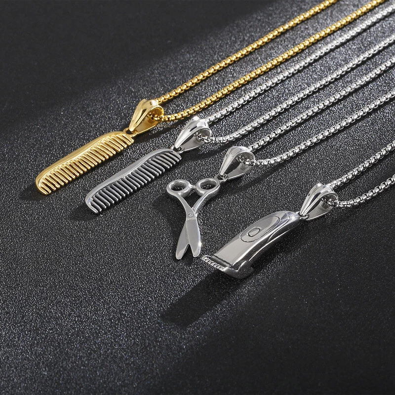 Creative wash cut Blow cut hair stainless steel pendant titanium steel necklace