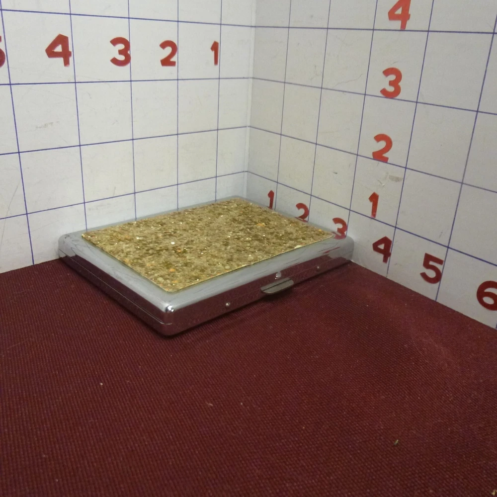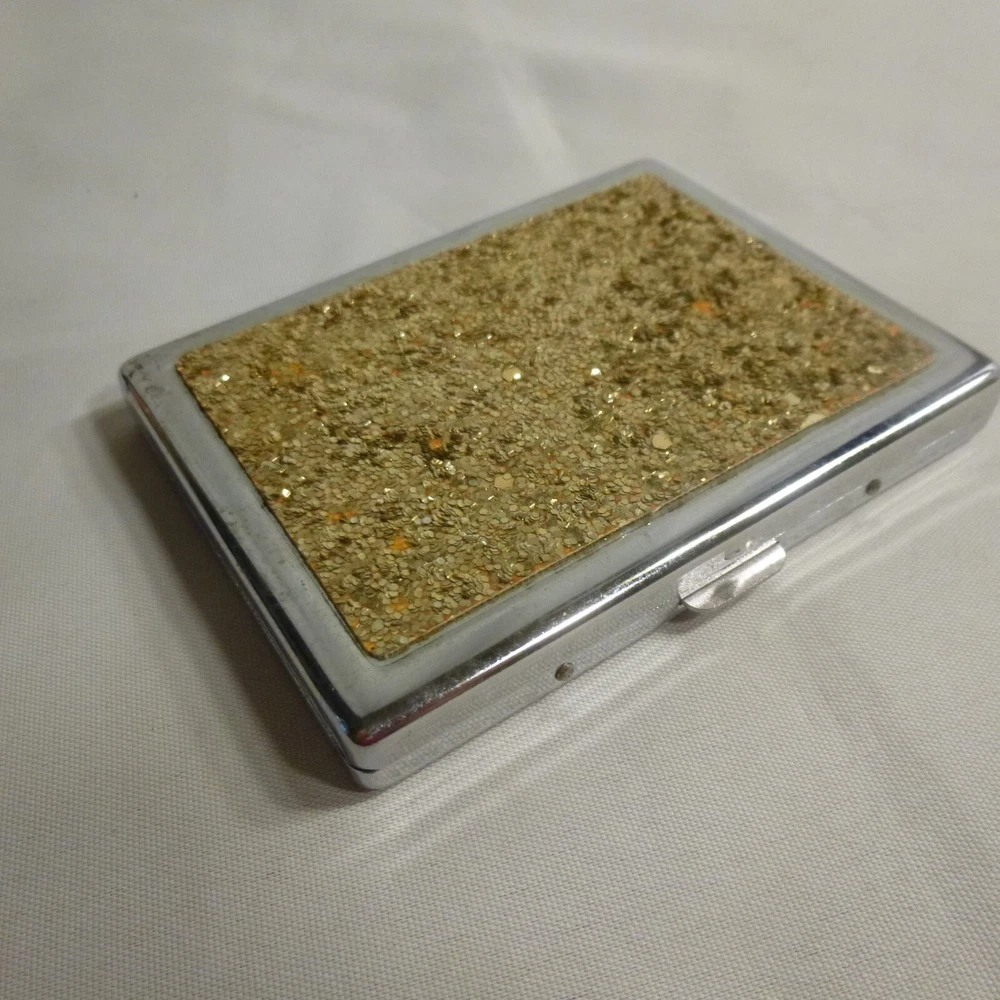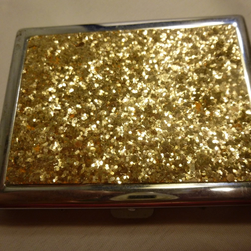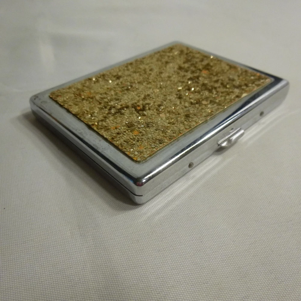 For Your Consideration: Credit Card / Business Card / Cigarette CASE - Gold Metal flake cover - MINT About Trinket Boxes The TRINKET BOX or TREASURE BOX as it is often called, dates back to Limoge, France in the 17th Century. It can be used for Secret Messages, Love Notes, Jewelry, Baby Keepsakes and/or other valuables. CONDITION This is a pre-owned item: please refer to photos for all ( if any ) damage, staining, tears, repairs, etc. I will attempt to note any known issues. When buying vintage, used or pre-owned items, please be aware there may be some aging, wear and minor manufacturing imperfections. This has been stored in a smoke free home. ***MEASUREMENTS*** Most of my photos are taken in front of a 1" square grid to give a better indication of size. Payment Payment is due within 3 days after the end of auction unless other arrangements have been specified. If payment has not been received within 7 days, we reserve the right to cancel the transaction. Shipping Item will be shipped within 1 Business day after payment is received. We are happy to offer a combined shipping discount on most orders. Discount is based on the size and quantity of items ordered. Please request a combined shipping invoice prior to payment. FEEDBACK I will leave feedback once I have received your feedback to assure you are satisfied with your purchase. Please resolve any questions prior to bidding. Please check my other eBay items regularly as I will continue to add new items of interest as well as other collectibles. Important Information for International Buyers Import duties, taxes, and charges are not included in the item price or shipping cost. These charges are the buyer's responsibility. Please check with your country's customs office to determine what these additional costs will be prior to bidding or buying. Powered by SixBit's eCommerce Solution