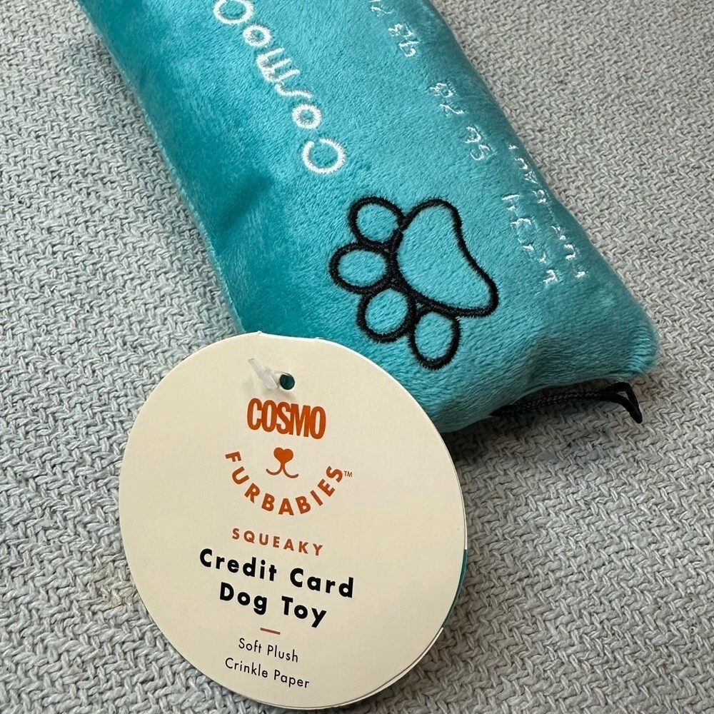 Credit Card Dog Toy NWT Plush Cosmo Cash Blue Squeaky Puppy Cute Fun Gift Chic