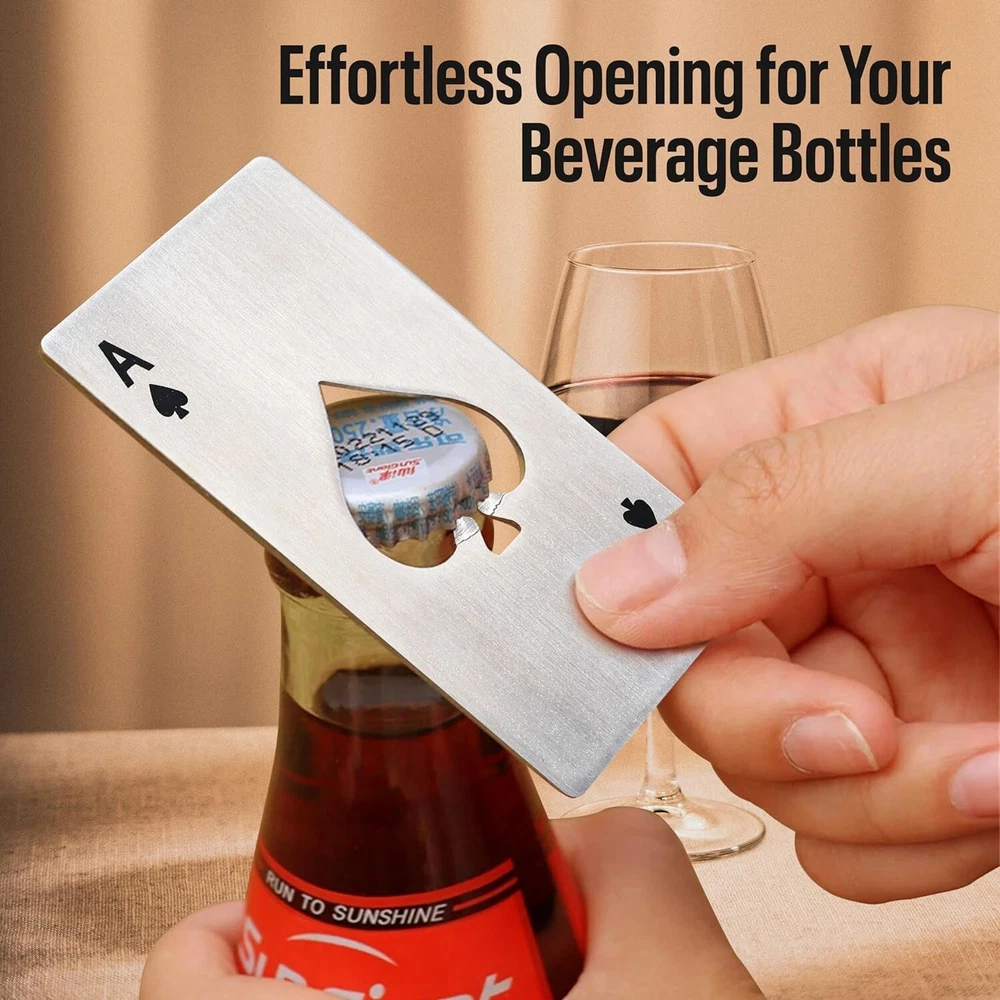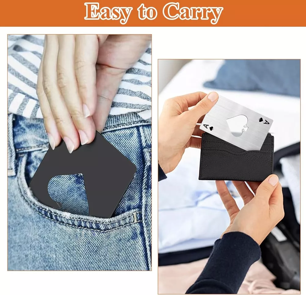 About this item Premium Material: Our poker bottle opener is made of high quality stainless steel material, sturdiness and durability, 1mm thick enough, not easy to break or deform, resistant to corrosion and rustproof, simple to operate, and can be applied for a long time. Poker Design: Our credit card bottle opener is adopted the hollow appearance design of the Ace of Spades, stylish and cool, novel and exquisite, powerful enough to tackle any bottle cap, allowing you to open bottles with ease and standing out in any occasion. Easy to Carry: The size of the groomsmen bottle opener is about 3.4in x 2in x 0.04in (8.5 x 5.3x 0.1cm), light and compact, perfect size for convenient to hold, and can be easily put in a wallet or shirt pocket, or other anywhere we want. Package includes : 1 Ace credit card opener + 1 Credit card folding knife