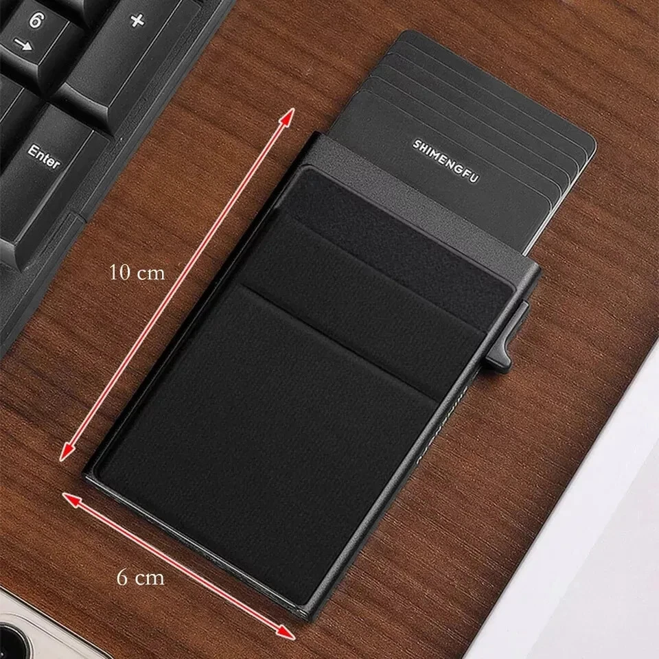 RFID Credit Card ID Holder Thin Slim Mini Wallets Luxury Metal Carteras Choice RFID Blocking Technology : Protects your credit cards from unauthorized scanning and theft. • Slim and Minimalist Design : Slim and compact design fits easily in your pocket or bag. • Luxury Metal Material : Durable and high-quality metal material adds a touch of luxury to your everyday carry. • Multiple Card Slots : Holds up to 6 cards, making it perfect for those who need to carry multiple cards. Materil : 304 stainless steel aviation aluminum Color: Black Size: 9.76cm (3.8 in) / 6.36cm (2.5 in) / 1.12cm (0.44 in) Feature : It can hold 5-6 cards and some paper money This Is Not a Simple Metal Card Wallet It Also Has Anti-theft Function Note: to prevent theft refers to the credit card information being stolen. This is a black metallic minimalist wallet for men, designed as a thin and slim credit card holder with an ID slot. It has a solid pattern and features credit card compartments. The wallet is compact in size. It has a luxury metal design and is manufactured in China. Size: 10.1cm(4 inch) / 6.9cm(2.7 inch) / 1.7 cm(0.67 inch) Color: Black Feature: It can hold 6 cards and some paper money The Best gift for Husband , Boy friends and Father ! : 1.:10.1*6.9*1.7 cm , : 11.1*7.9*2.7 cm,:12.4*7.8*2.1 cm 2.:90g ,:40g 3.:; 4.:,1,17; 5.:50*40*30cm , 200,23 kg; 6.:; 7. logo ://, 100; 8.7 8.,.