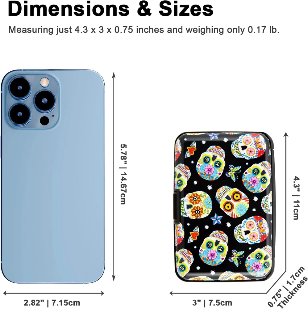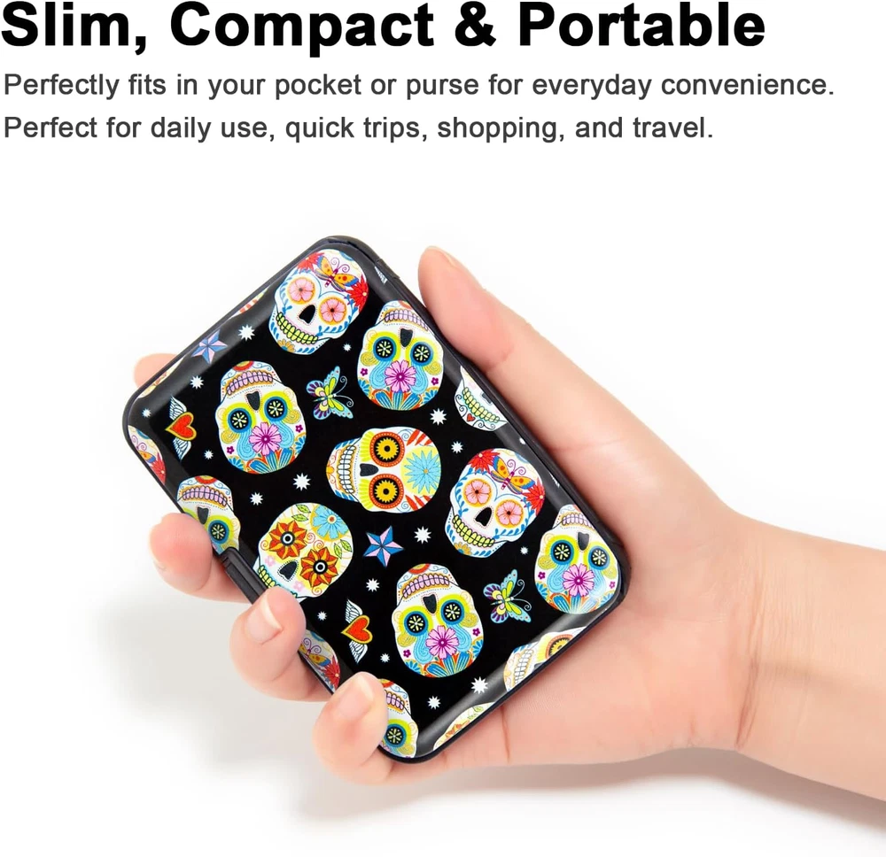 Store New Arrivals Add to Favorite View Feedback Contact Credit Card Holder, Metal Card Wallet RFID Blocking Mini Slim Aluminum Business Hard Card Case for Women Men (Butterfly Sugar Skulls) Description Item model number Flower2025 Style Slim Wallet Color Butterfly Sugar Skulls Pattern Floral Product Dimensions 0.75 x 3 x 4.3 inches Material Aluminum, Plastic, Metal, Acrylonitrile Butadiene Styrene Country of Origin China Item Weight 2.08 ounces Department Womens Brand Kaabao Manufacturer Kaabao Stylish RFID Guard: Merging elegance and security, our Credit Card Wallet features beautiful floral and cute animal prints. Made with high-quality aluminum and eco-friendly ABS plastic, it ensures top-tier RFID protection and anti-theft reliability in a chic design for today's woman. Compact Mini Protector Wallet: Designed for the style-conscious, this small slim wallet measures 4.2 x 2.83 x 0.7 inches and weighs just 0.17b. Its smooth, rounded corners and lightweight design ensure it fits easily into front pockets or purses, ideal for daily use and travel. Organizer with Flair: Keep your essentials organized in style. With 7 accordion-style slots, this wallet can hold up to 10 credit or bank debit cards, social security cards, IDs, and driver's licenses, or over 20 business cards, all while showcasing your love for sophisticated design. Trendsetting Styles: Select from a range of eye-catching patterns, featuring delicate florals, striking leopard prints, and graceful butterfly motifs. Each wallet stands out as a statement of art and individuality, perfectly embodying your personal style. Gift of Sophistication: Perfect for the woman who cherishes both elegance and functionality, this hard wallet is an excellent gift for birthdays, anniversaries, Mother's Day, Valentine's Day, Thanksgiving, or simply as a gesture of appreciation. Elevate Your Style with Our Stylish RFID Guard Wallet For the modern woman, our Credit Card Wallet is more than an accessory; it's a fusion of elegance and security. Each wallet, adorned with chic floral and animal prints, is crafted from premium aluminum and eco-friendly ABS plastic, providing top-tier RFID protection in a fashionable design. Compact and Convenient Our Compact Mini Protector Wallet, measuring just 4.2 x 2.83 x 0.7 inches and weighing only 0.17b, blends seamlessly into your daily life. Its sleek design with smooth, rounded corners ensures comfort and style, whether tucked into a pocket or a purse. Organize with Style With 7 accordion-style slots, this wallet neatly holds up to 10 cards or over 20 business cards. It's a practical solution for organizing your essentials while maintaining a flair for sophisticated design. Trendsetting Styles for Every Taste Choose from our array of patterns, from delicate florals to bold leopard prints. Each wallet is a unique statement of art and personal style, showcasing your individuality. The Perfect Gift Ideal for any special occasion, from birthdays to Mother's Day, this hard wallet is a thoughtful expression of care and elegance. It's the perfect gift for the woman who appreciates beauty and practicality. Your Partner in Sustainable Fashion At Kaabao, we're committed to combining luxury with eco-conscious living. Our wallets reflect this ethos, offering a blend of style, functionality, and environmental responsibility. Join us on this journey of sophisticated, sustainable fashion. ABOUT US We offer the best prices around on high quality products. Our E-store includes media such as books, movies, music and games while offering electronics, toys, sporting apparel, clothing, tools, general home, garden items and more. SHIPPING We are always working hard to ensure your package arrives as soon as possible. Please understand that some factors like weather, high postal traffic, and the performance of shipping companies are outside of our control. We offer free shipping to the lower 48 states and ship within 2 business days of payment, usually sooner. We do not accept P.O. Boxes. Please provide a physical address. For shipping outside of the continental USA, we only use eBay's Global Shipping Program.The item is shipped to KY and then sent to the rest of the world. International customers are responsible for all duties and taxes. Continue to check out in order to calculate costs for shipping the item to your country. Messages regarding eBay's Global Shipping Program MUST be directed at eBay EXCLUSIVELY. RETURNS We offer a 30-Day Return Policy on items which you are not completely satisfied with. You have the option for a full-refund or an exchange of the item. No returns are available on items shipped outside of the USA. PAYMENT We accept PayPal. CONTACT US This page content is yet to come Please ad us to your favorite seller and visit again later Thank You CUSTOMER SATISFACTION We try our very best to make sure every customer is completely satisfied. If there's a problem, message us! We're happy to help. WE ACCEPT