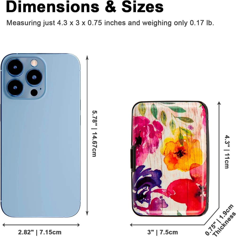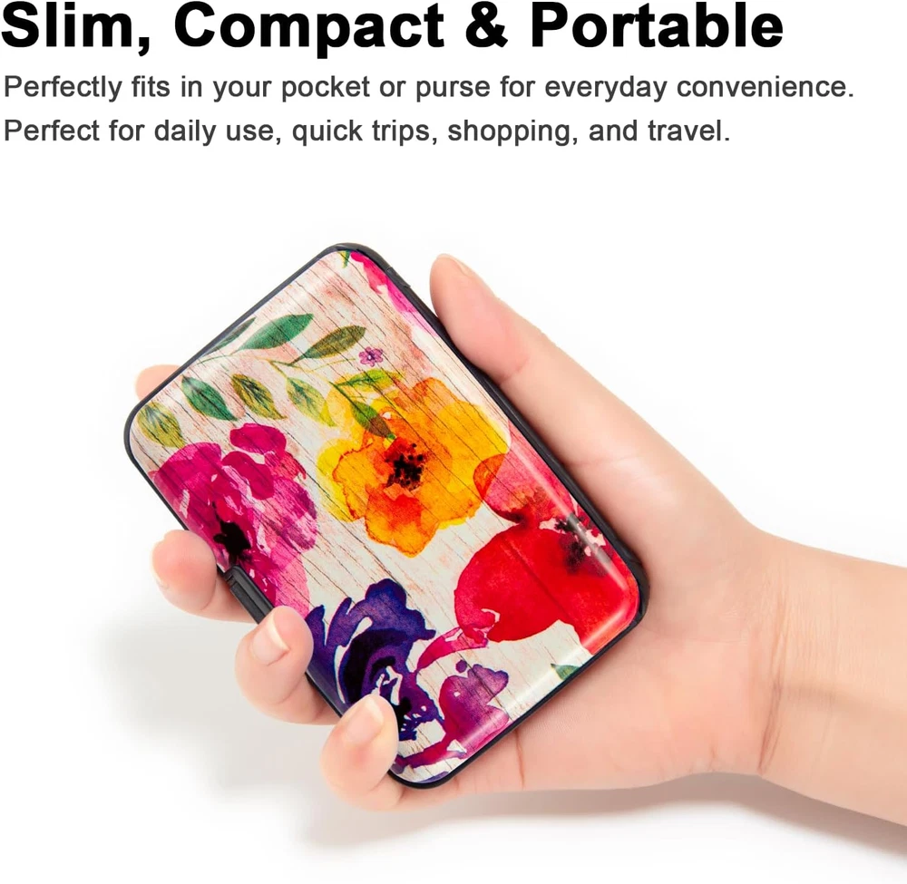 Store New Arrivals Add to Favorite View Feedback Contact Credit Card Holder, Metal Card Wallet RFID Blocking Mini Slim Aluminum Business Hard Card Case for Women Men (A Watercolor Flowers) Description Item model number Flower2025 Style Slim Wallet Color A Watercolor Flowers Pattern Floral Product Dimensions 0.75 x 3 x 4.3 inches Material Aluminum, Plastic, Metal, Acrylonitrile Butadiene Styrene Country of Origin China Item Weight 2.4 Ounces Department mens Brand Kaabao Manufacturer Kaabao Stylish RFID Guard: Merging elegance and security, our Credit Card Wallet features beautiful floral and cute animal prints. Made with high-quality aluminum and eco-friendly ABS plastic, it ensures top-tier RFID protection and anti-theft reliability in a chic design for today's woman. Compact Mini Protector Wallet: Designed for the style-conscious, this small slim wallet measures 4.2 x 2.83 x 0.7 inches and weighs just 0.17b. Its smooth, rounded corners and lightweight design ensure it fits easily into front pockets or purses, ideal for daily use and travel. Organizer with Flair: Keep your essentials organized in style. With 7 accordion-style slots, this wallet can hold up to 10 credit or bank debit cards, social security cards, IDs, and driver's licenses, or over 20 business cards, all while showcasing your love for sophisticated design. Trendsetting Styles: Select from a range of eye-catching patterns, featuring delicate florals, striking leopard prints, and graceful butterfly motifs. Each wallet stands out as a statement of art and individuality, perfectly embodying your personal style. Gift of Sophistication: Perfect for the woman who cherishes both elegance and functionality, this hard wallet is an excellent gift for birthdays, anniversaries, Mother's Day, Valentine's Day, Thanksgiving, or simply as a gesture of appreciation. Elevate Your Style with Our Stylish RFID Guard Wallet For the modern woman, our Credit Card Wallet is more than an accessory; it's a fusion of elegance and security. Each wallet, adorned with chic floral and animal prints, is crafted from premium aluminum and eco-friendly ABS plastic, providing top-tier RFID protection in a fashionable design. Compact and Convenient Our Compact Mini Protector Wallet, measuring just 4.2 x 2.83 x 0.7 inches and weighing only 0.17b, blends seamlessly into your daily life. Its sleek design with smooth, rounded corners ensures comfort and style, whether tucked into a pocket or a purse. Organize with Style With 7 accordion-style slots, this wallet neatly holds up to 10 cards or over 20 business cards. It's a practical solution for organizing your essentials while maintaining a flair for sophisticated design. Trendsetting Styles for Every Taste Choose from our array of patterns, from delicate florals to bold leopard prints. Each wallet is a unique statement of art and personal style, showcasing your individuality. The Perfect Gift Ideal for any special occasion, from birthdays to Mother's Day, this hard wallet is a thoughtful expression of care and elegance. It's the perfect gift for the woman who appreciates beauty and practicality. Your Partner in Sustainable Fashion At Kaabao, we're committed to combining luxury with eco-conscious living. Our wallets reflect this ethos, offering a blend of style, functionality, and environmental responsibility. Join us on this journey of sophisticated, sustainable fashion. ABOUT US We offer the best prices around on high quality products. Our E-store includes media such as books, movies, music and games while offering electronics, toys, sporting apparel, clothing, tools, general home, garden items and more. SHIPPING We are always working hard to ensure your package arrives as soon as possible. Please understand that some factors like weather, high postal traffic, and the performance of shipping companies are outside of our control. We offer free shipping to the lower 48 states and ship within 2 business days of payment, usually sooner. We do not accept P.O. Boxes. Please provide a physical address. For shipping outside of the continental USA, we only use eBay's Global Shipping Program.The item is shipped to KY and then sent to the rest of the world. International customers are responsible for all duties and taxes. Continue to check out in order to calculate costs for shipping the item to your country. Messages regarding eBay's Global Shipping Program MUST be directed at eBay EXCLUSIVELY. RETURNS We offer a 30-Day Return Policy on items which you are not completely satisfied with. You have the option for a full-refund or an exchange of the item. No returns are available on items shipped outside of the USA. PAYMENT We accept PayPal. CONTACT US This page content is yet to come Please ad us to your favorite seller and visit again later Thank You CUSTOMER SATISFACTION We try our very best to make sure every customer is completely satisfied. If there's a problem, message us! We're happy to help. WE ACCEPT