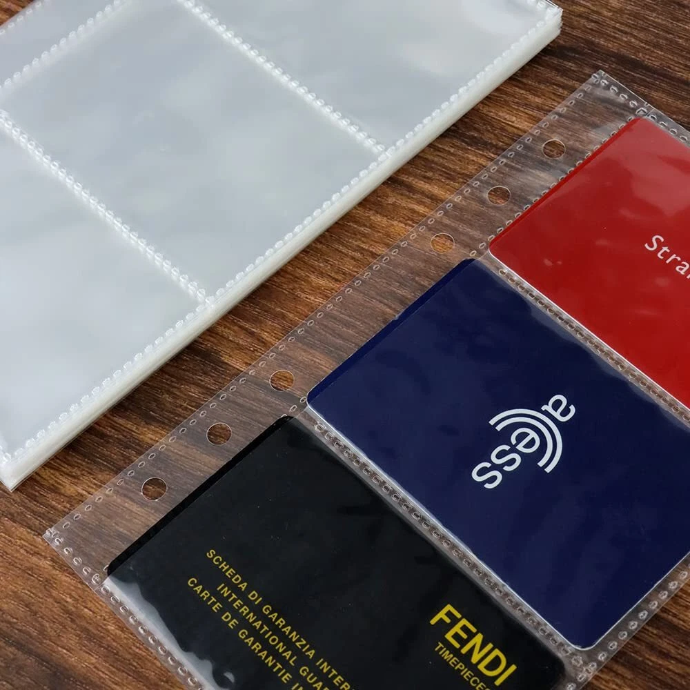 🎁【Keep Precious Moments】The size of the binder pocket is specially designed for all kinds of VIPs cards, credit cards, ID card and one pocket can hold 2 universal size card. Better storage so you don't have to look for cards everywhere. The touch is smooth, delicate and comfortable, making memories more tender. Loose-leaf design, flexible collocation, DIY your personal collection. Transparent and intuitive, better protect your memory. 🌷【3.35x2.16" Cards Protectors】It's fits standard A6 6-ring cards. Each page can hold 6 cards of size 85mm x 55mm / 3.35" x 2.16" (3 for front and 3 for back); Page layout: horizontal (Landscape). The A6 album binder size: 105mm x 175mm (4.13" x 6.89"); 6-ring clip spacing: 19mm/0.75"; 51mm/2". It is recommended to put cards with chips in a separate pocket ❤️【Care for Memories】The Card binders is made of environmentally friendly material polypropylene, which is waterproof and can effectively protect the photos from fading and sticking. Cards are inserted laterally from the inside, preventing them from falling out during handling. PP material is transparent and has no odor. Very light, thin, high quality, easy to take and effortless. 📖【High-quality Binder】It's suit for any A6 standard 6-ring photo sleeves binder. Different inner pages can be selected and matched freely. Ideal for storing credit card, postcards, photos, VIPs, bank cards, airline tickets, documents, cards, coupons, passports, pictures, scrapbooks, collectible cards, seed binders, note cards, flash cards and more. 🥰【Exquisite Service】25 sheets 4.13x6.89" A6 6-ring album inner page per package. If you have any questions about the product, please feel free to contact us, we will serve you as soon as possible.