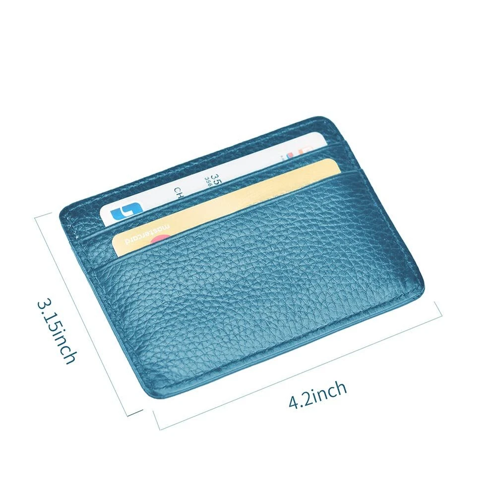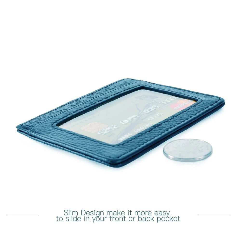 ULTRA SLIM FRONT POCKET WALLET. The leather card holder is designed to be slim and feels amazingly soft. Sturdy enough to last a long time, its super slim figure (only 0.2 cm/0.08 inches thickness) makes it easy to slide into your front pocket. It is super thin, fits perfect in your pocket MADE FROM GENUINE PREMIUM LEATHER. This super thin card sleeve is made from premium genuine leather, durable and stylish. Comfortable to use. Great slim card sleeve wallet for carrying your most frequently used cards and some bills. SLIM WALLET. The credit card holder is with an ID card window where you can put your IDs or driver license, featuring 2 card slots on the other side; this tyle with a middle compartment where you can put notes, receipts or some folded cash MINIMALIST WALLET DESIGNED FOR PRATICALITY. The slim front pocket wallet is light in weight (0.7oz only) , perfect for a night out tucked away almost invisibly in your pocket and it won't look like that you are bring a brick when you are bringing all the necessary. Professional for business cards or a small wallet which carry the cards you often use.