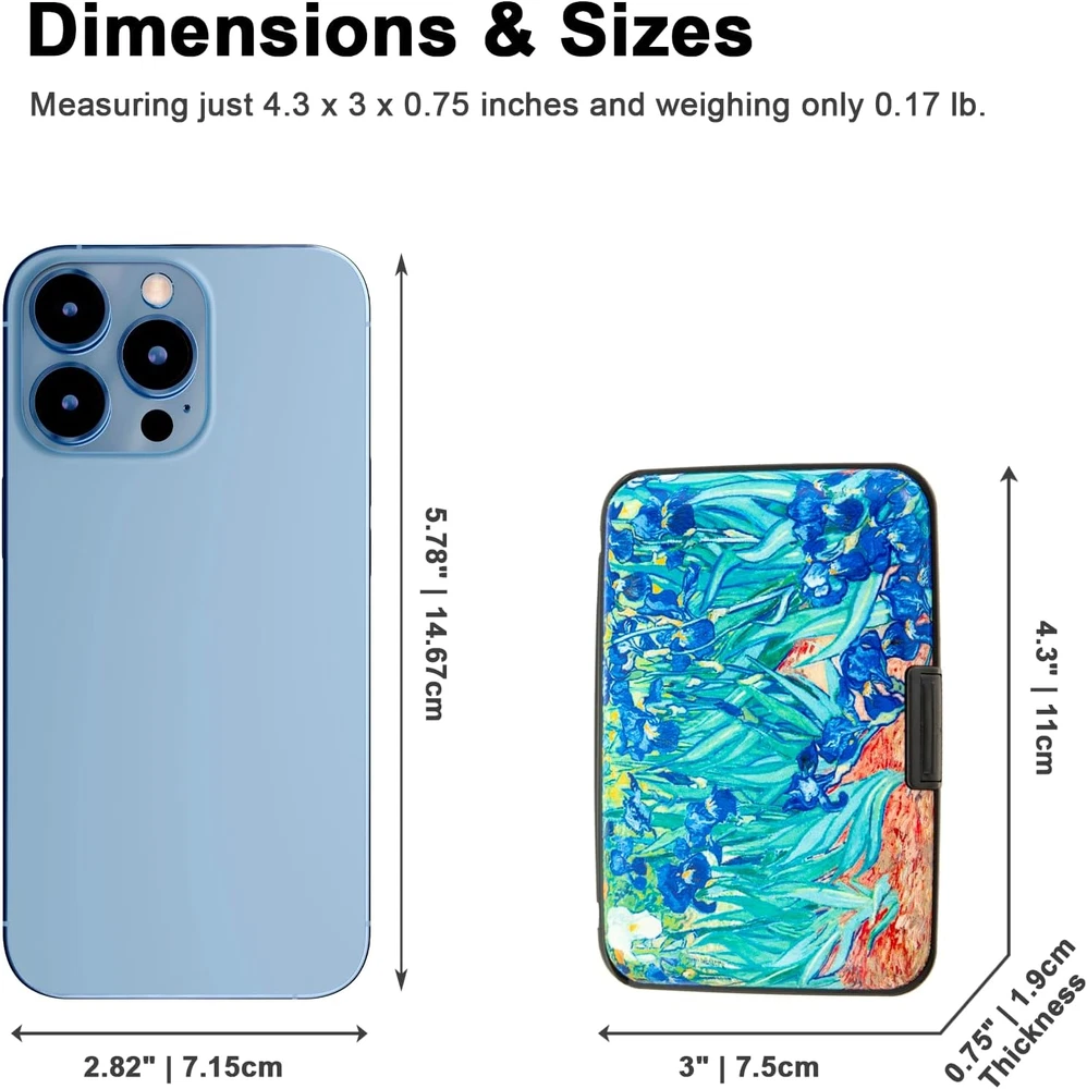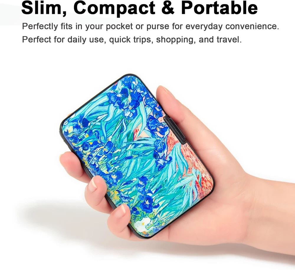 Store New Arrivals Add to Favorite View Feedback Contact Credit Card Holder Small RFID Blocking Wallet Business Metal Slim Mini Aluminum Hard Case for Women Men Description Item model number Ka016022 Color Lrises Product Dimensions 4.3 x 3 x 0.75 inches; 2.72 ounces Department Womens Is Discontinued By Manufacturer No Manufacturer Kaabao Discover a blend of security and style with the Kaabao wallet holder. This slim, compact, metal card protector encased in hard aluminum and plastic(ABS) shell, safeguards your credit, debit, and ID cards with RFID blocking technology. Its thin, small size of 4.3 x 3 x 0.86 inches slides into your front pocket or purse, ideal for travel. The clasp closure opens to reveal 7 accordion slots, with a capacity to hold 7-10 cards or over 20 business cards, keeping them safe, secure, and organized. The aluma shell, adorned with artistic prints, reflects a minimalist yet protective design, making it a perfect gift for both men and women. Experience a safe, anti-theft pocket organizer that doesn't compromise on aesthetic appeal. ABOUT US We offer the best prices around on high quality products. Our E-store includes media such as books, movies, music and games while offering electronics, toys, sporting apparel, clothing, tools, general home, garden items and more. SHIPPING We are always working hard to ensure your package arrives as soon as possible. Please understand that some factors like weather, high postal traffic, and the performance of shipping companies are outside of our control. We offer free shipping to the lower 48 states and ship within 2 business days of payment, usually sooner. We do not accept P.O. Boxes. Please provide a physical address. For shipping outside of the continental USA, we only use eBay's Global Shipping Program.The item is shipped to KY and then sent to the rest of the world. International customers are responsible for all duties and taxes. Continue to check out in order to calculate costs for shipping the item to your country. Messages regarding eBay's Global Shipping Program MUST be directed at eBay EXCLUSIVELY. RETURNS We offer a 30-Day Return Policy on items which you are not completely satisfied with. You have the option for a full-refund or an exchange of the item. No returns are available on items shipped outside of the USA. PAYMENT We accept PayPal. CONTACT US This page content is yet to come Please ad us to your favorite seller and visit again later Thank You CUSTOMER SATISFACTION We try our very best to make sure every customer is completely satisfied. If there's a problem, message us! We're happy to help. WE ACCEPT