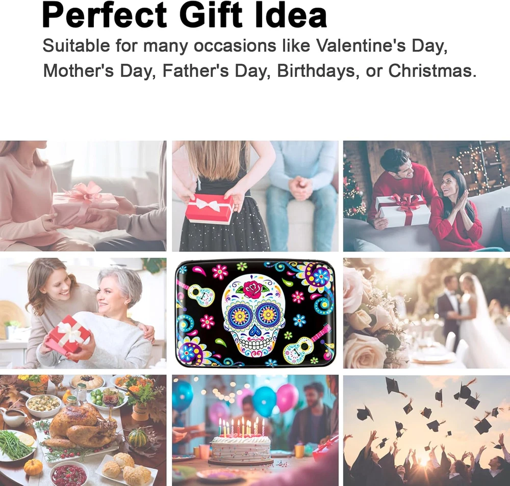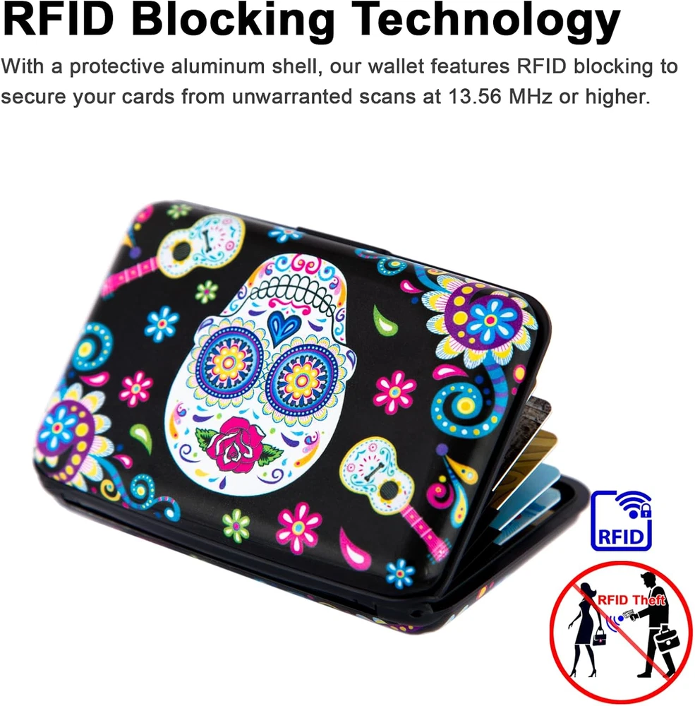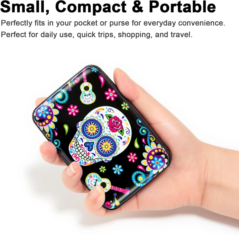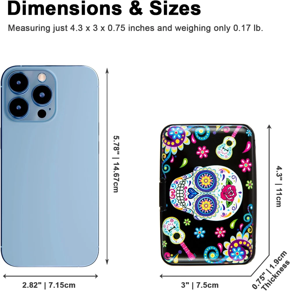 Discover a blend of security and style with the Kaabao wallet holder. This slim, compact, metal card protector encased in hard aluminum and plastic(ABS) shell, safeguards your credit, debit, and ID cards with RFID blocking technology. Its thin, small size of 4.3 x 3 x 0.86 inches slides into your front pocket or purse, ideal for travel. The clasp closure opens to reveal 7 accordion slots, with a capacity to hold 7-10 cards or over 20 business cards, keeping them safe, secure, and organized. The aluma shell, adorned with artistic prints, reflects a minimalist yet protective design, making it a perfect gift for both men and women. Experience a safe, anti-theft pocket organizer that doesn't compromise on aesthetic appeal.