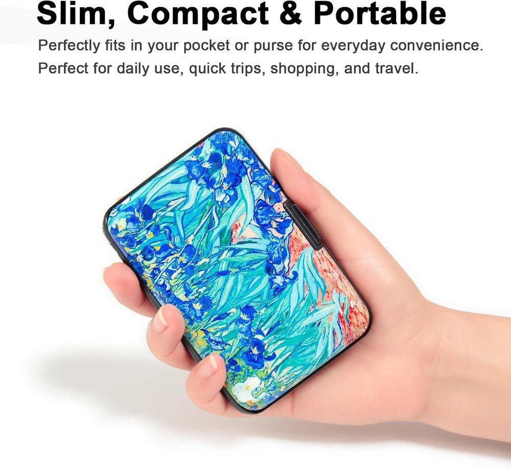 Credit Card Holder Small RFID Blocking Wallet Business Metal Slim Mini Lrises Product Details Is Discontinued By Manufacturer : No Product Dimensions : 4.3 x 3 x 0.75 inches; 2.72 ounces Item model number : Ka016022 Department : Womens Manufacturer : Kaabao Kaabao RFID Wallet Slim RFID metal card holder with artistic prints. Holds 7-10 cards/20+ business cards in 7 slots. Safe and stylish for daily use