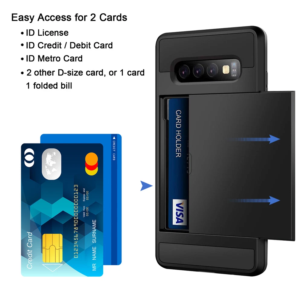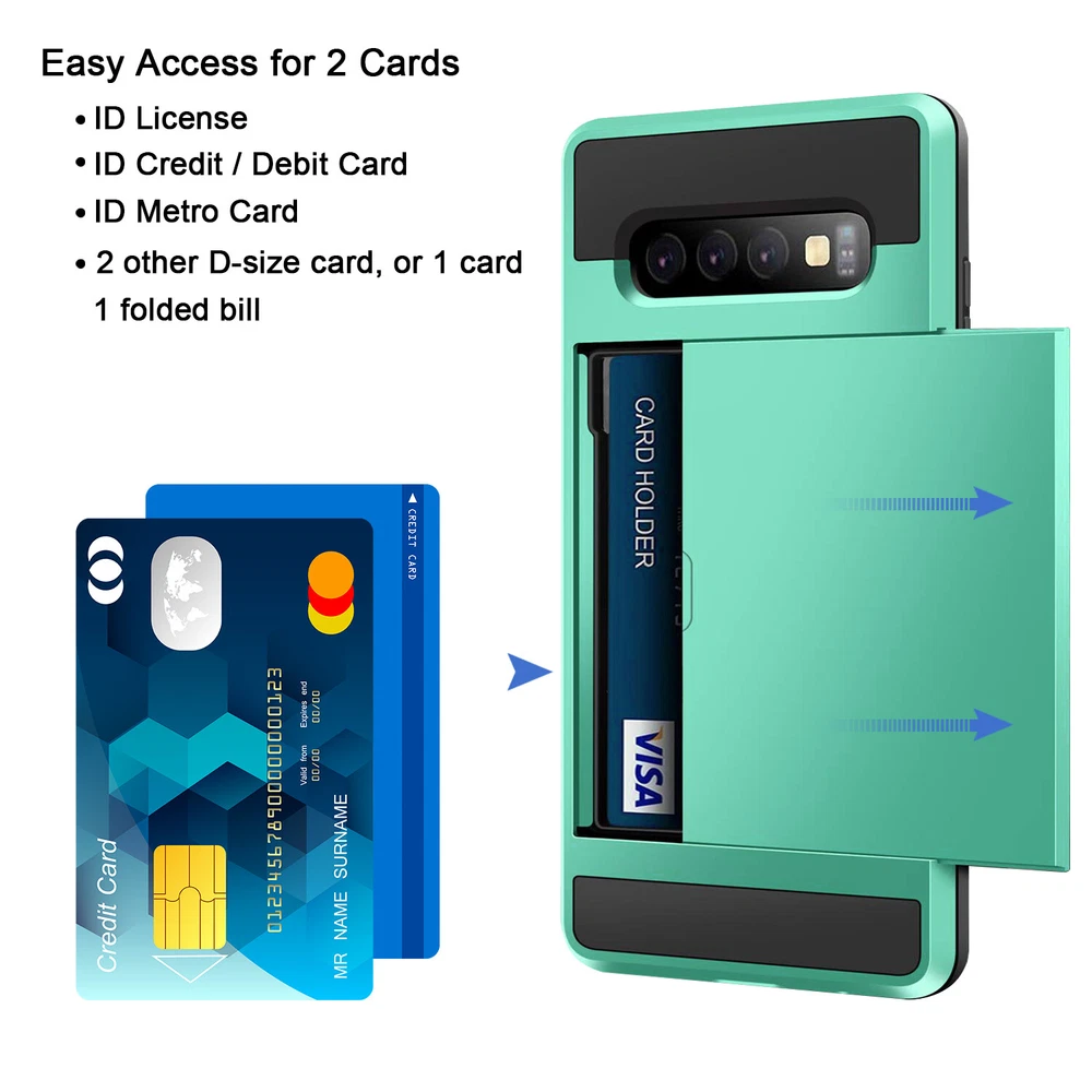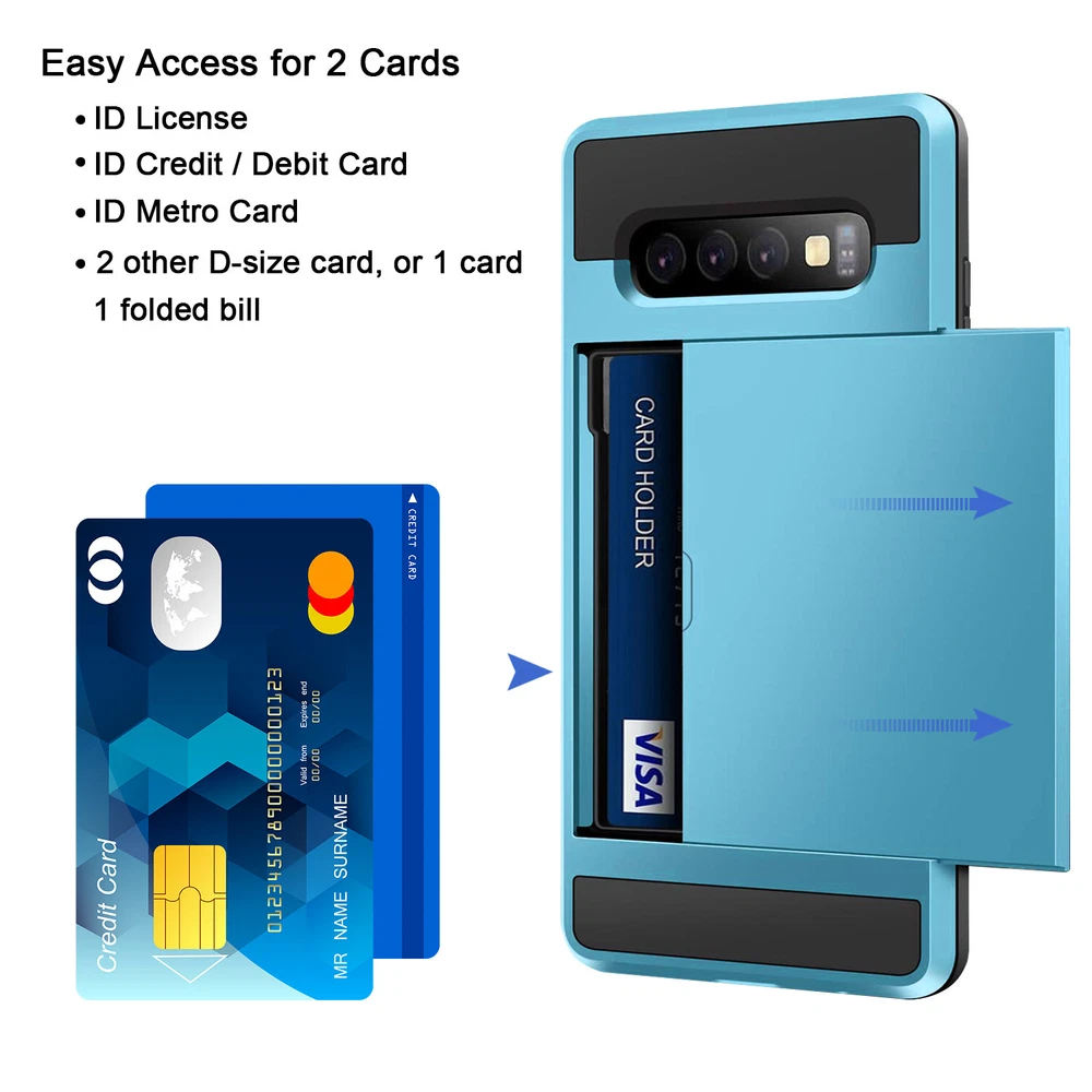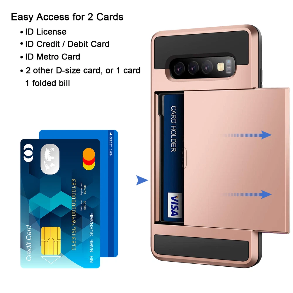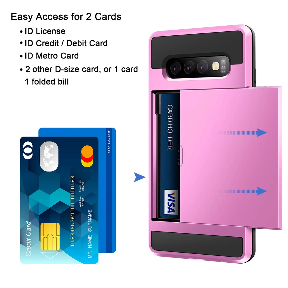 Credit Card Holder Wallet Slide Slim Case Cover For Samsung Galaxy S10e S10 Plus Feature: -- Perfect Match: Fits perfectly on your phone and easy to put it in and pull it out. Precise cutouts give you full access to ports, and sensitive button covers allow responsive presses. -- Material: Hybrid armor hard PC cover and impact resistant shockproof soft rubber bumper,resist scratches and extreme drop-protection. -- Card Slot: Sliding compartment makes holding and using up to three cards simple. (ID card, credit card, debit card, or cash.) Sliding cover and hidden card holder design offers convenience and protection in daily use. -- Precise Cutouts: Precise cutouts and design, easy access to your buttons,cameras and other ports. -- Camera & Screen Protection: Case with a raised lip to protect cameras and the phone screen against scratches and stains. -- User Friendly Design: Texture design on the inner soft rubber helps the phone to dissipate heat quickly. -- Pocket Friendly: Dual-layer cover is designed with smooth, soft, and rounded edges to make sliding your phone into bags and pockets simple. -- Available Colors: Black,Blue,Green,Pink,Rose gold Warm Tip: 1.The slider is a little tight when first use.This situation is normal. You may find it easier to slide after several times. 2.Because the wallet case is a durable and 2 pieces case. If the plastic frame and the TPU separated, pls don't be worried. It can be used again just put them all together. Compatible With: -- For Samsung Galaxy S10e (5.8 inch) -- For Samsung Galaxy S10 (6.1 inch) -- For Samsung Galaxy S10 Plus (6.4 inch) Package included: 1 x Card Pocket Wallet Case Cover Payment 1. We only accept PayPal at this time. 2.PayPal transactions are free for buyers. 3.Your payment is traceable and sellers do not have access to your credit card number or other financial data. Delivery details We offer FREE Standard shipping on all orders in the United States! Your order will be dispatched within 1 business/working day of receiving payment (Monday-Friday). If you have any problem or issue with your order at any time,please contact us first before you contact eBay,and benefit from our response. We will make every effort to have your items shipped as quickly as possible,and to meet or beat the time estimates above.Please remember that the times above are not only shipping estimates,and are not guarantees. Once your items have shipped out,we will update eBay with the tracking information as quickly as possible.eBay should send you an email with the shipment information,and the information will also be available on your eBay purchase history. Return Policy Dear buyer, All products have been checked and packaged in good condition before dispatch.In case the item is defective,please inform us with 7 days of receipt,we will replace a new one or full refund.If you are not happy with the received item,please contact us before leaving any feedback.We will try our best to assist you.Return shipping will be paid by the buyer if you buy wrong item by your mistake,and $3 restocking fee will be charged by each of the item. Contact us Our goal is to provide you with excellent products and service! We strive to satisfy our customers,as you can see by our excellent eBay feedback.If you have any questions or concerns about order,please contact us immediately so that we may resolve the issue as quickly as possible. If you have any questions or concerns please feel free to message or email.Our staff is happy to assist you in any way possible.Our office is open Monday through Friday.