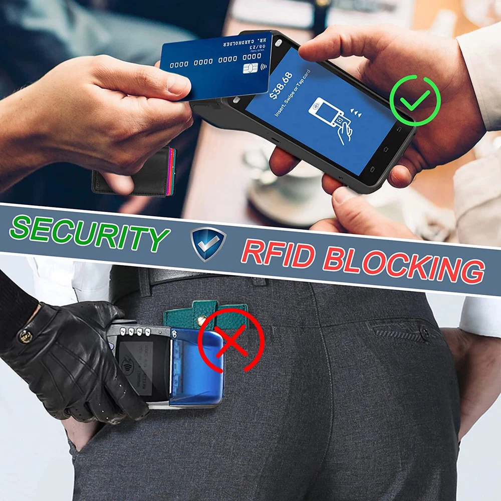 About this Item Size: 4.13 * 2.95 * 0.11in Innovative design - this compact pull tab design is extremely functional and impressively minimal conveniently allowing EDC (every day carry) of your credit cards, cash, and id. This top grain - black crazy horse leather cardholder will fit comfortably in any pant, trouser, or shirt pocket and was built to last. Reduce wallet bulk while still carrying up to 8 cards & cash effortlessly! Problem solved - unlike other wallets that can be poorly made or complicated t use, our simple first-class design solves these problems! How? Because the defy wallet is constructed of only the best grade materials; super-strong stitching, top quality leathers/linings, feels amazing and will last for years. Our minimalistic design offers exceptional functionality providing a superior user-friendly experience. Expertly crafted for easy use allowing you to organize your cards your way! Our wallets are the number 1 choice because they are premium quality, efficien and functional providing extreme longevity and style for everyday life & travel. I t ' s a great present for your husband, boyfriend, brother, or boss and awesome gifts for men who have everything. Plus… we’ve got you covered with our 100% satisfaction gu arantee! RFID blocking pull tab pocket - keep yourself safe from thieves' scannin devices. Stop walking around in fear that your private, personal information is being stolen. Get protected now with our defy men's wallet equipped with RFID blocking technology. Designed and tested to block 13.56 Mhz frequencies (debit & credit cards, passports, etc.) does not block 125 kHz frequencies (security access cards, hotel room keys, etc.). Don’t wait, until it’s too late! Package content:1*wallet
