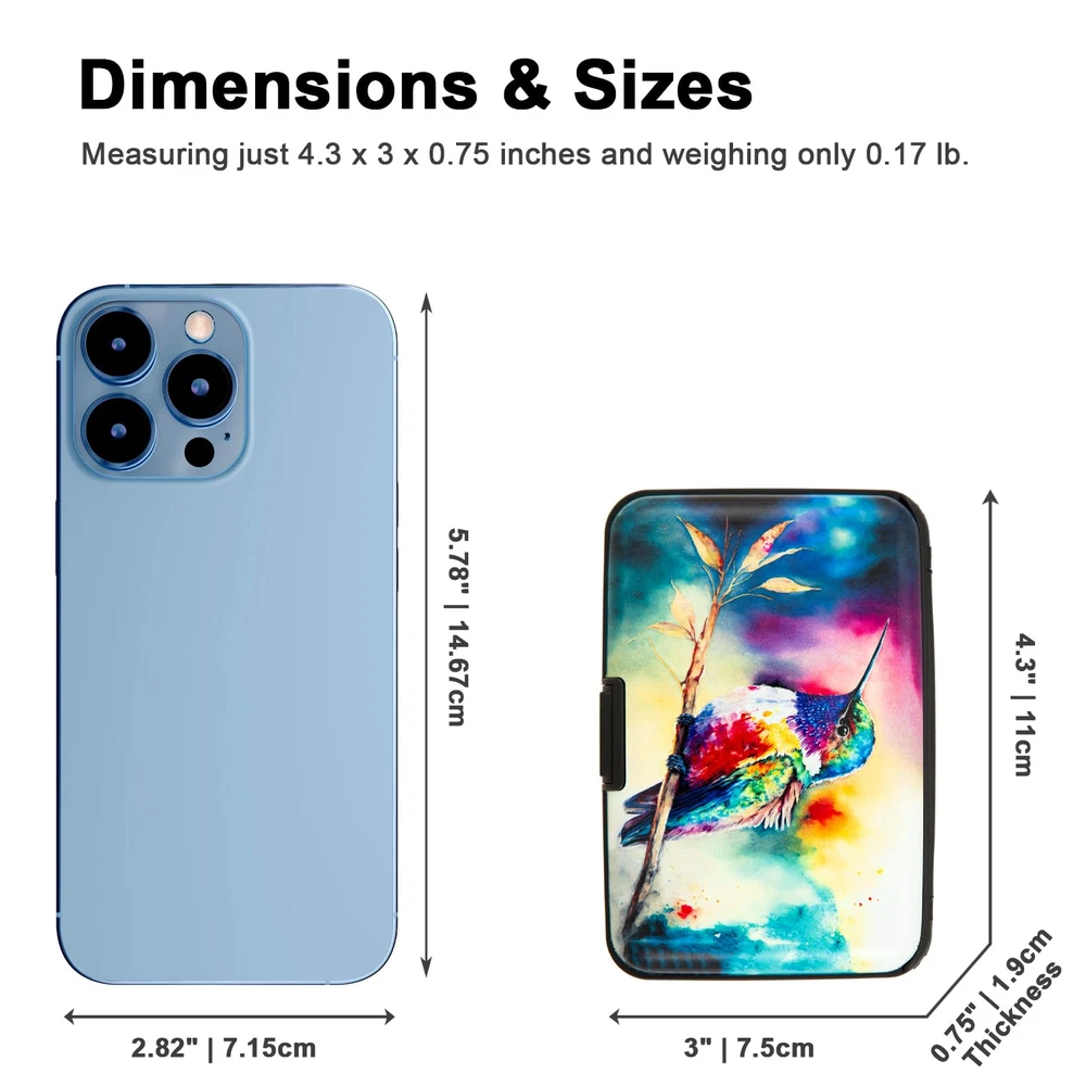 Description Elevate Your Everyday with 's Aluminum Credit Card Wallet Holder Discover the perfect blend of style and security with our compact, eco-friendly wallet. Engineered for modern life, it combines advanced RFID protection with a sleek, aluminum design, ensuring your data stays safe while you stay stylish. Compact for Comfort: At just 4.2 x 2.83 x 0.7 inches and weighing only 0.17b, it fits easily into any pocket or purse. Smooth, rounded corners enhance the feel and ease of use. Efficient Organization: With 7 expandable slots, it holds up to 10 credit cards or over 20 business cards, making organization effortless and stylish. Unique and Personal: Reflect your style with a range of artistic designs, from classic to contemporary. Each wallet is a statement of individuality. The Ideal Gift: Perfect for Valentine's Day, birthdays, Mother's Day, and more, this wallet is an excellent choice for women and girls who appreciate elegance and functionality. Join the Sustainable Journey: With , step into a world where luxury meets eco-consciousness. Our commitment to the environment is as strong as our commitment to quality. Experience the difference – where every detail matters. Ultimate RFID Protection: This sleek Aluminum Credit Card Wallet Holder, crafted with new eco-friendly ABS plastic, is your perfect business case solution. It offers advanced RFID blocking to safeguard your data, blending metal durability with environmental responsibility. Small, Slim, Compact Wallet: Measuring 4.2 x 2.83 x 0.7 inches and weighing just 0.17b, this lightweight wallet, with its smooth, rounded corners, easily fits into front pockets or purses. Perfect for everyday use, quick trips, shopping, and travel. Efficient Card Organizer: Our wallet features 7 accordion-style slots, securely organizing up to 10 credit cards, IDs, or driver's licenses, and more than 20 business cards. Artistic and Personalized: Each wallet showcases a unique artistic design, ranging from classic artworks to contemporary patterns, allowing you to express your personal style. The Ultimate Gift Choice: Delightfully cute and versatile, this wallet is an ideal gift for women, ladies, and girls. Perfect for any occasion, from Valentine's Day and birthdays to Mother's Day, Father's Day, Christmas, and Thanksgiving, it’s a thoughtful way to show your appreciation and love.