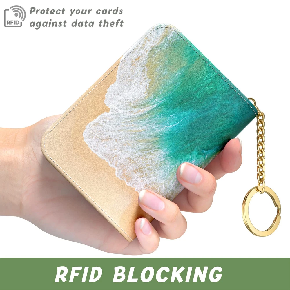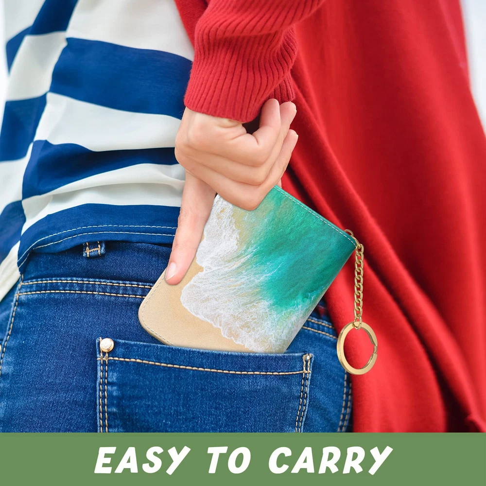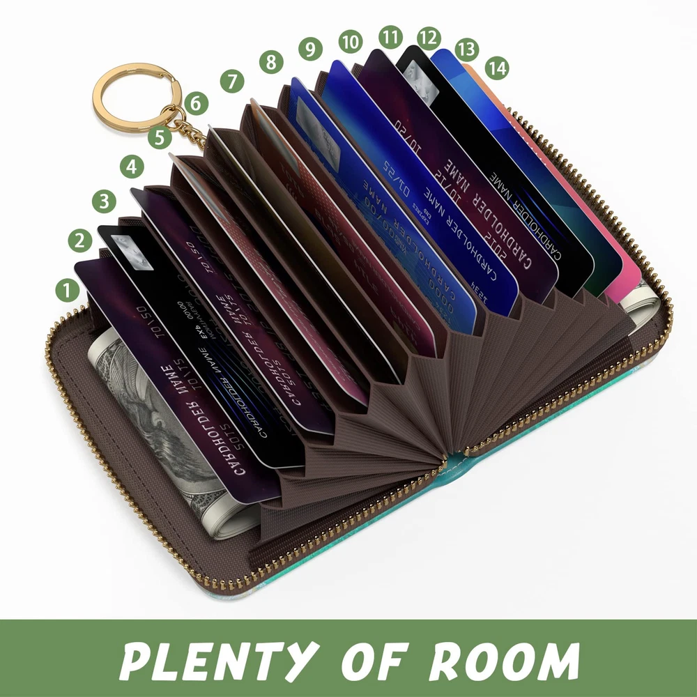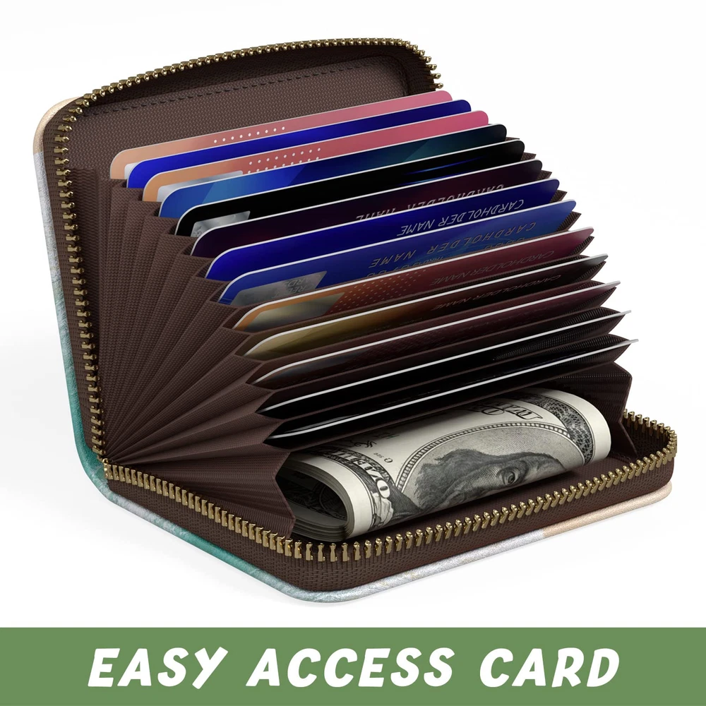 Description credit card holder for women small RFID card wallet slim mini leather business ID card organizer case zipper keychain Small Body And Large Capacity: Measuring 4.33 x 3.15 x 0.98 in includes 9 credit card slots, and 2 cash slots. Small and lightweight to carry for travel, shopping, outing. Zipper Closure Design: Designed with Zipper Closure to protect your credit card from missing. Leather Material: / Made of genuine leather material, texture soft. RFID blocking designed lining keeps your vital information secure. / Internal Structure: 1 x zippered, 1 x keychain, 12 x credit card slots, 2 x cash slots can hold plenty cash. Accordion slots style design womens card purse, small and compact enough to organize your cards. Perfect Gift: It fits as a perfect gift under all festivals and occasions like Father’s Day, Valentine’s Day, Christmas, New Year etc. Protable and Compact Size: This slim credit card holder for women measures 4.33 x 3.15 x 0.98 inch, only 2 oz weight, fits perfectly in your pocket and purse. Comes with extra key chain for easy carry when shopping or traveling Plenty of Room: Compact card holder wallet designed with 12 card slots and each slot can hold 1 - 2 cards, perfect to hold your credit card, ID card, shopping cards and more. Specially designed with 2 extra wide slots for bills, folded cash and receipts Privacy Protection: RFID credit card wallet with advanced RFID blocking technology, can perfectly block unwanted RFID readers from obtaining sensitive private information. Always protect your credit card, ID information from unauthorized scanning High Quality Materials and Workmenship: This credit card holder are made of premium PU leather, smooth, anti-fray and soft to touch. Each the leather card wallet is individually hand stitched ensures a long lasting life and durability Great Gift Idea: Cute zipper wallet with unique design, simple but fashionable, it matches with your youth and vitality and individuality. Available in multiple style, boho, floral, marble. It is the best gift choice for mother's day, thanksgiving day