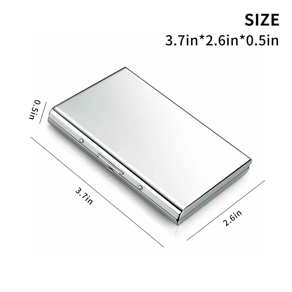 Credit Card ID Holder Slim Money Travel Wallet Men Stainless Steel RFID Blocking Features High-quality with smooth to the touch stainless steel Enough space to protect up to six cards Safe wallet blocks the invasive RFID signals from crooks' scanners Stainless Steel Card Holder Case for Travel and Work. Slim Wallet , Credit Card Case for Business Cards, Credit Cards and Driver License. Security latch locks up tight to keep your cards safe from water, weather & scanning thieves. Specifications Material: Stainless Steel + Plastic Color: Black, Silver, Blue (pick your color) Size: 3.7" x 2.6" x 0.5" Weight: 2.5oz Items Included One (1) Credit Card Holder (pick your color) Payment Shipping Returns About Us Payment Shipping Returns About Us We accept PayPal, major credit cards, and other methods supported by eBay Managed Payments. We offer FREE shipping on all orders! Your order will be dispatched within 24 hours receiving payment and you should expect to receive it two to five days after dispatch. If you are not completely satisfied within 30-days of your purchase, you can return the product and get a full refund or replacement (your choice). Our return process is eBay managed and very easy to follow. We will be responsible for the return shipping cost of the damaged or wrong items. We are a family owned business located in the beautiful western Pennsylvania. We began as a wholesale jewelry and fashion importer. After successfully selling a few precison jewelry scales on a major online marketplace in 2009, we decided to transform into a professional weight scale distributor. Then soon expanded into other great product categories. See our other items Features ---High-quality with smooth to the touch stainless steel ---Enough space to protect up to six cards ---Safe wallet blocks the invasive RFID signals from crooks' scanners ---Stainless Steel Card Holder Case for Travel and Work. ---Slim Wallet , Credit Card Case for Business Cards, Credit Cards and ---Driver License. ---Security latch locks up tight to keep your cards safe from water, weather & scanning thieves. Specifications ---Material: Stainless Steel + Plastic ---Color: Black, Silver, Blue (pick your color) ---Size: 3.7" x 2.6" x 0.5" ---Weight: 2.5oz Items Included ---One (1) Credit Card Holder (pick your color) Credit Card ID Holder Slim Money Travel Wallet Men Stainless Steel RFID Blocking Features High-quality with smooth to the touch stainless steel Enough space to protect up to six cards Safe wallet blocks the invasive RFID signals from crooks' scanners Stainless Steel Card Holder Case for Travel and Work. Slim Wallet , Credit Card Case for Business Cards, Credit Cards and Driver License. Security latch locks up tight to keep your cards safe from water, weather & scanning thieves. Specifications Material: Stainless Steel + Plastic Color: Black, Silver, Blue (pick your color) Size: 3.7" x 2.6" x 0.5" Weight: 2.5oz Items Included One (1) Credit Card Holder (pick your color) Payment We accept PayPal, major credit cards, and other methods supported by eBay Managed Payments. Shipping We offer FREE shipping on all orders! Your order will be dispatched within 24 hours receiving payment and you should expect to receive it two to five days after dispatch. Returns If you are not completely satisfied within 30-days of your purchase, you can return the product and get a full refund or replacement (your choice). Our return process is eBay managed and very easy to follow. We will be responsible for the return shipping cost of the damaged or wrong items. About Us We are a family owned business located in the beautiful western Pennsylvania. We began as a wholesale jewelry and fashion importer. After successfully selling a few precison jewelry scales on a major online marketplace in 2009, we decided to transform into a professional weight scale distributor. Then soon expanded into other great product categories. See our other items Features High-quality with smooth to the touch stainless steel Enough space to protect up to six cards Safe wallet blocks the invasive RFID signals from crooks' scanners Stainless Steel Card Holder Case for Travel and Work. Slim Wallet , Credit Card Case for Business Cards, Credit Cards and Driver License. Security latch locks up tight to keep your cards safe from water, weather & scanning thieves. Specifications Material: Stainless Steel + Plastic Color: Black, Silver, Blue (pick your color) Size: 3.7" x 2.6" x 0.5" Weight: 2.5oz Items Included One (1) Credit Card Holder (pick your color)