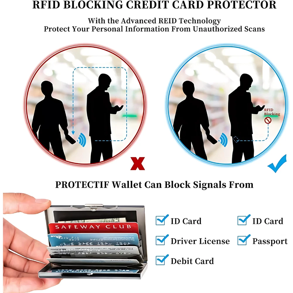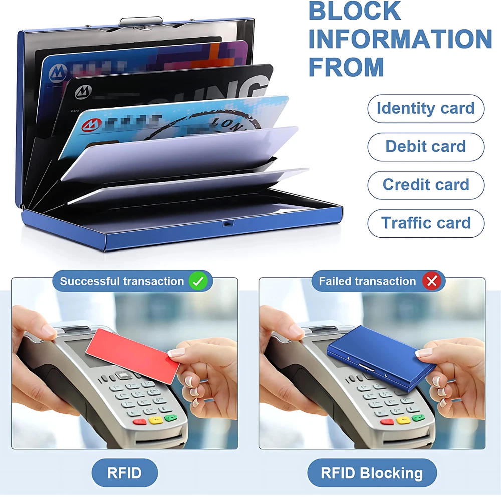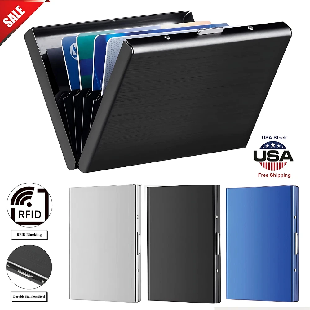 Product Description Compact and Stylish Design: The Slim Money Travel Wallet is crafted for the modern man who values functionality and style. With a sleek, minimalist profile, this wallet fits comfortably in your pocket without creating bulk, making it perfect for everyday use or travel. The stainless steel construction ensures durability while adding a touch of sophistication to your accessory collection. RFID Blocking Technology: Keep your personal and financial information safe with advanced RFID blocking technology. The wallet is designed to shield your credit cards, ID, and other sensitive data from unauthorized scanning, protecting you from electronic pickpocketing and identity theft. Spacious Yet Slim: Despite its slim design, this wallet offers ample storage space. It can securely hold multiple credit cards, an ID card, and cash, helping you stay organized without compromising on space. The intuitive layout ensures quick and easy access to your essentials whenever you need them. Durable Stainless Steel Construction: Made from premium-grade stainless steel, this wallet is built to last. Its sturdy construction resists scratches, dents, and wear, ensuring it maintains its polished look even with daily use. Travel-Friendly: Lightweight and compact, this wallet is ideal for on-the-go lifestyles. Whether you're traveling for business or leisure, it fits seamlessly into any pocket or bag, making it the ultimate travel companion. Perfect Gift for Men: This Credit Card ID Holder Slim Money Travel Wallet combines practicality with style, making it an excellent gift for birthdays, anniversaries, or holidays. It's the perfect choice for men who appreciate thoughtful, high-quality gifts. Aluminum Credit Card Holder Wallet CASE Purse Metal Business Card Protector Stainless Steel RFID Blocking Credit Card ID Holder Slim Money Travel Wallet Product Features: Material: Premium stainless steel with sleek finish RFID Protection: Blocks unauthorized scanning of RFID chips Capacity: Holds 6–8 cards, ID, and folded cash Dimensions: Slim design for maximum portability Weight: Lightweight for added convenience Style: Minimalist and modern aesthetic Package Includes: 1 X Card Holder RFID BLOCK Metal Wallet Aluminum Business Id Credit Card Case Holder Product Specifications : Pattern Type Solid Item Weight 0.08 kg Style Fashion Main Material Metallic Gender Unisex Item Length 9.5 cm Item Width 6.5 cm Closure Type No Zipper Brand Unbranded Style Slim Wallet Shape Box Shape Quality Guaranteed Composition Stainless steel Special Feature RFID blocking Material Stainless Steel Use Credit Card Holder Item Type Card & ID Holders Capacity Can hold up to 6 Standard Credit Cards/IDs Payment Policy PayPal is the preferred way to pay. Through PayPal, you can use a debit or credit card, check, bank account, and even finance your order in some cases! Shipping Policy Shipping is FREE to all 50 states & Provinces in the United States with tracking provided! Tracking information is automatically added within 1 business day after receiving a cleared payment . Returns Policy All our products come with a 30-Day Free Return Policy. If you would like to return your item and you are within 30 days of the purchase, and it is still in its original condition, you can return the item by contacting us through eBay messaging or eBay return process. Once the item has been received and verified, a refund of the purchase price and any taxes paid will be issued through PayPal.