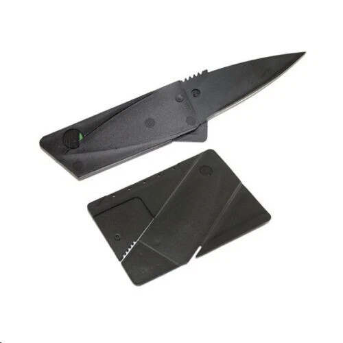 This listing is for one credit card knife. Features: Blade color black Handle color black Closed size : 85.6 x 54 x 2.2 mm (size of credit card) Open size : (total length: 14.3cm, blade length: 6cm, handle length: 8.3cm) Material : Polypropylene plastic body and stainless steel blade. ultra thin credit card style for ease of carrying. Blade edge is protected when stored in a wallet, drawer, or kit bag. Integral blade sheath cannot be lost. Protective hilt appears when opened. Blade is locked when in open, cutting mode. Great for preppers bug out bag emergency, camping & other outdoor activities My goal is 100% customer satisfaction. Please Email any questions or concerns before purchase. Money back guarantee. Have a wonderful, blessed day.