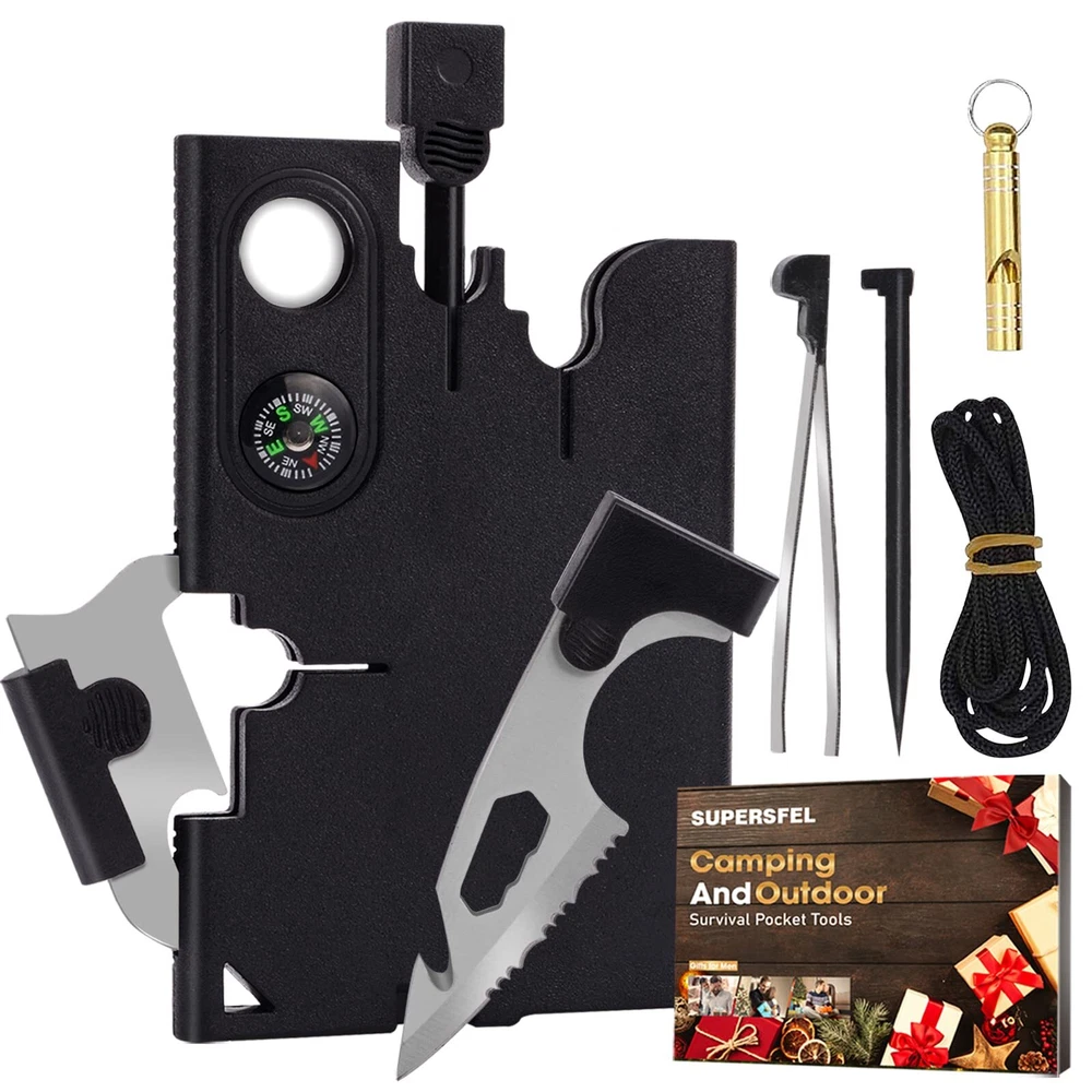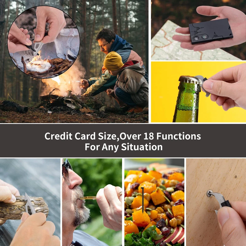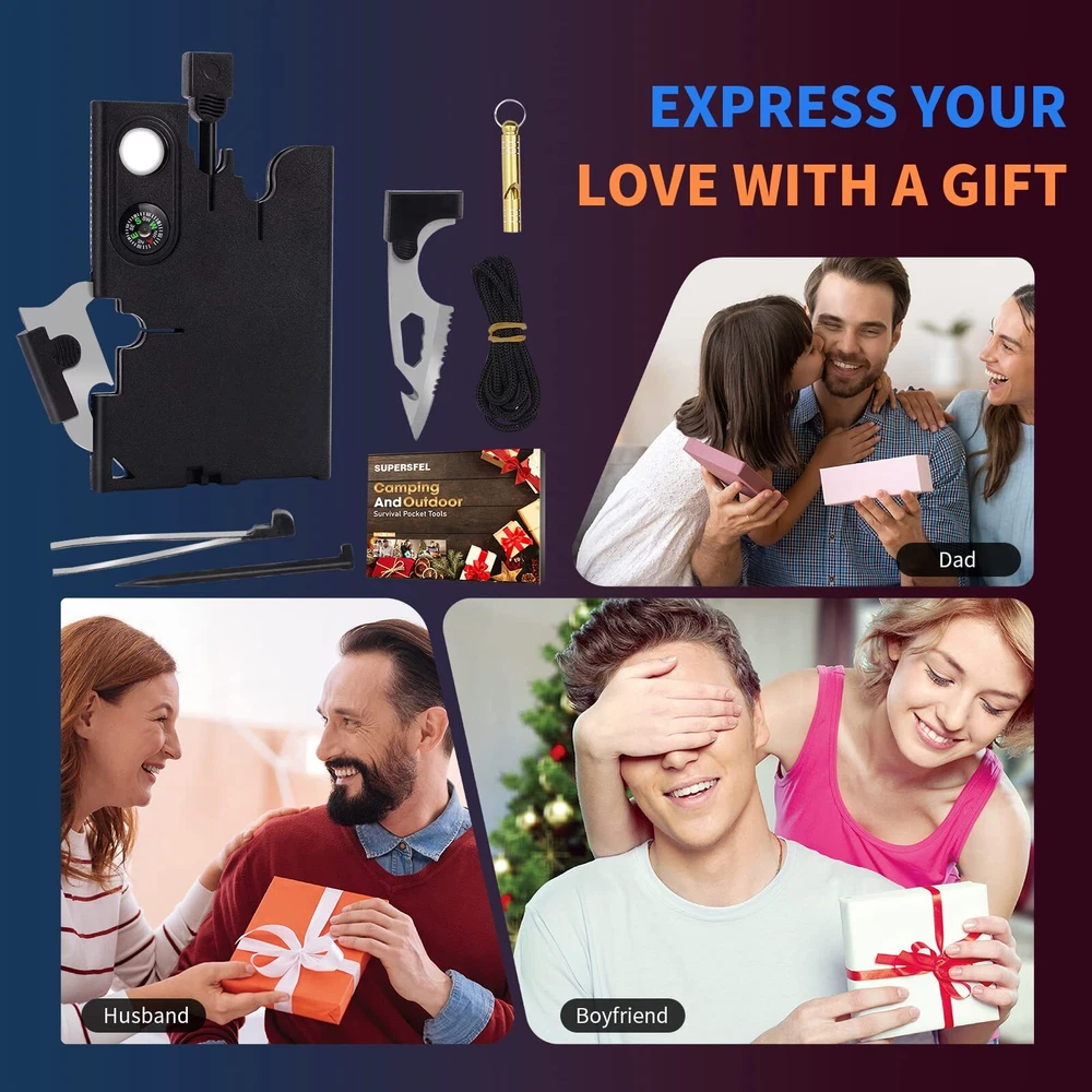 Fathers Gifts for Dad Men - Credit Card Multitool 18 in 1 Cool Gadgets, Survival Wallet Tools Useful Gifts for Men Women, Christmas Stocking Stuffers Birthday Gifts with Screwdrivers Compass Practical Gifts For Men/Women With Gift Box: The multi-function tool set has an exquisite gift box packaging and a variety of universal tool accessories, You can give it to your Dad, husband, friends, family; on Father’s Day, Christmas, birthday, Thanksgiving or as a New Year’s gift, Men/women won’t know that they need such a multifunctional pocket tool card, until they open the gift box, They will be as excited as a child receiving candy. 18-In-1 Multitool Card: The classic pocket tool card is durable , It can be used in any environment, In this mysterious black body, you have a full set of commonly used tools, including screwdrivers of different sizes, bottle openers, ruler, positioning wrench, compass, etc, these are enough to deal with all kinds of small tasks you encounter every day, Believe me, this useful multitoolis an excellent gift for men, they will definitely like it On these unique gadgets. Pocket Tool Card: Credit card tools are small but powerful and easy to carry around, It can be easily placed in your pocket or hung on the keychain, If you are going to camp, remember to put it in your backpack, Its compasses, and other cool gadgets can help you at any time, The durable ABS steel material allows you to use it without worrying about damaging it at any time, It is an excellent gift for hiking, camping, fishing. It is a necessary filler for emergency equipment and survival kits. Lightweight material & powerful: With such a multi-function and accessory tool card, the weight is only 0.15 pounds, specially uses ABS stainless steel to make these small tools, which have a longer service, The 2-inch serrated edge can easily cut hard materials, Multi-size screwdrivers can play its role when you are doing installation work, as well as corkscrews, rulers, compass, ect Various tools such allow you to solve any small problems you encounter at any time. More Uses: Tool gadget lovers will enjoy a mini tech construction tool card anywhere anytime! Whether you're a repairman, mechanic, carpenter, hobbyist, boat owner, or camper You will fall in love with this pocket toolset, Such a multi-functional gadget can improve the efficiency of various repair work, Never Pay For A Product You Don't Like. Not only do we have the best credit card multitool, we also offer you the best customer service!