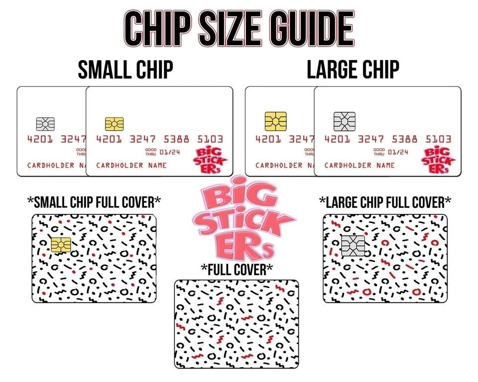 💳 Credit Card SMART Sticker, Credit Card Skin Cover, Debit Card Skin Cover, EBT Card Skin Cover, Vinyl Decal Sticker for most cards 💳 Shipping Information: Our default free shipping option is via eBay Standard Envelope. Please be aware that while this method is cost-effective at only $0.63 per envelope, its tracking can sometimes be inaccurate or not update at all. If you desire more accurate and dependable tracking for your card skins, we recommend selecting our upgraded shipping option at checkout. By choosing the free shipping, you acknowledge and accept the potential limitations of the eBay Standard Envelope's tracking. Precision-Cut for Seamless Transactions: Each card skin is precision-cut with a margin of just a millimeter from the edge. This ensures seamless payments, whether you're swiping or using the chip at payment terminals. 🏆 Pay in style with eye-catching unique designs made to personalize your own credit or debit card. 💌 Each vinyl card skin comes ☝️ single with your pick of Gloss or Holographic finish . ✂️ Die cut with precision to fit any credit/debit. *Be sure to pick the appropriate chip placement and size for your card of choice. 📐 Sizing options include: “Small Chip” ,“Large Chip”, “Fully Covered no chip”. *The Chip Size Guide is located in the photo slides* 🔪 Scratch Resistant, the skin has a protective vinyl outer layer to help prevent scratching and damage. 🛠 Very simple to stick and apply. Just peel back chip side half way then align to corners and chip. After corners are aligned pull off paper backing slowly to lay and stick.