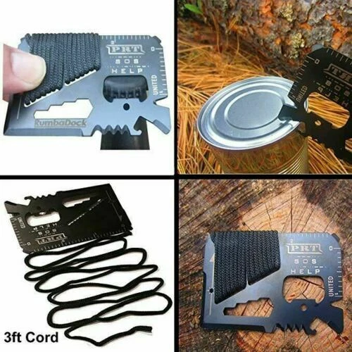 Stainless Steel Credit Card Tool 14 in 1 Multi Pocket Survival Camping Tools Ships from USA. 100% Satisfaction Guaranteed. American owned & Operated 1... Can opener 2... Knife edge 3... Screwdriver 4... Ruler 5... Bottle opener 6... Hexagon 4 position wrench 7... Butterfly screw wrench 8... Saw blade 9... Angle Gauge 10... 2 position wrench 11... Key chain hole 12... Para cord 13... Twine knife 14... Positioning hole Use in the woods or in the city. Stainless steel 420. Hardness 55HRC. 2.68 long x 1.78 wide x .079 thick (1)... 14-1 Wallet Survival Tool Stainless Steel with carry pouch USPS GROUND SHIPPING contiguous 48 states. Each order is professionally packed to assure safe delivery.*Transit time approximately 1-4 days, exclude weekends and holidays. MOST ORDERS ARE SHIPPED WITHIN 1 BUSINESS DAY AFTER WE PROCESS YOUR PAYMENT. THANKS FOR LOOKING TERMS/POLICIES Although we do our best to describe our items as completely as possible, we welcome any and all questions about our products prior to and after any purchase. Inspect your items as soon as they arrive- if there is any damage to the boxes, notify us immediately. If any of the products contained therein are damaged or inoperable, please notify us within three days of receipt- at which time we will replace, at no extra charge to you, the defective or damaged goods. Products shipped to HI, AK, PR may incur extra costs. Listings with free shipping do not apply to HI, AK, PR or any APO, FPO; nor does it apply to US protectorates or international shipments. Shipments to Canada may be required to pay extra taxes and duties upon receipt. RETURNS: Returns for refund or exchange are accepted within 30 days of the receipt of your order. Please notify us via email referencing your eBay id, order number and date of purchase. Returns are processed within three business days of receipt of merchandise. We do not pay for return shipping. When returning merchandise please make sure you get a shipping reference number like a tracking number. Returned or exchanged merchandise must be in original condition otherwise a 20% restocking fee may apply. Cost of shipping is never refundable. By purchasing this item you have agreed to the terms listed above. On Jul-20-17 at 16:05:09 PDT, seller added the following information: