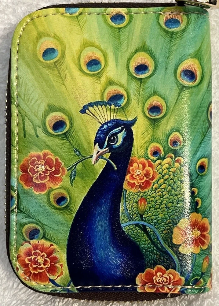 HomeCredit Card Wallet Pouch Holder Key Full Zip Clutch Peacock Dual Sided Colorful