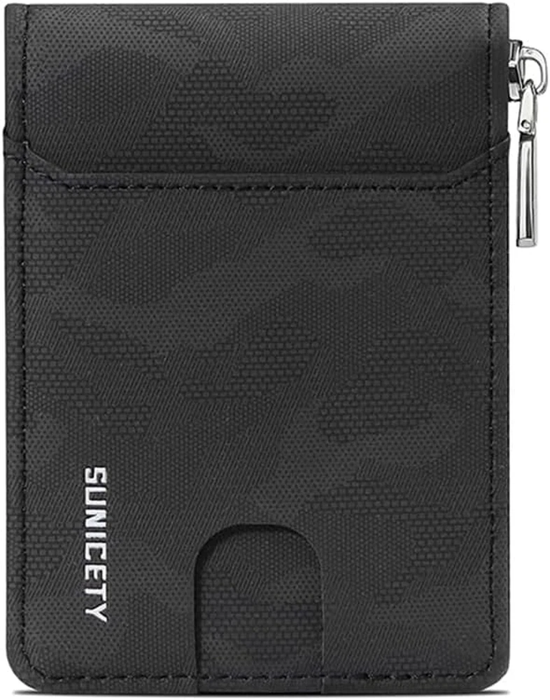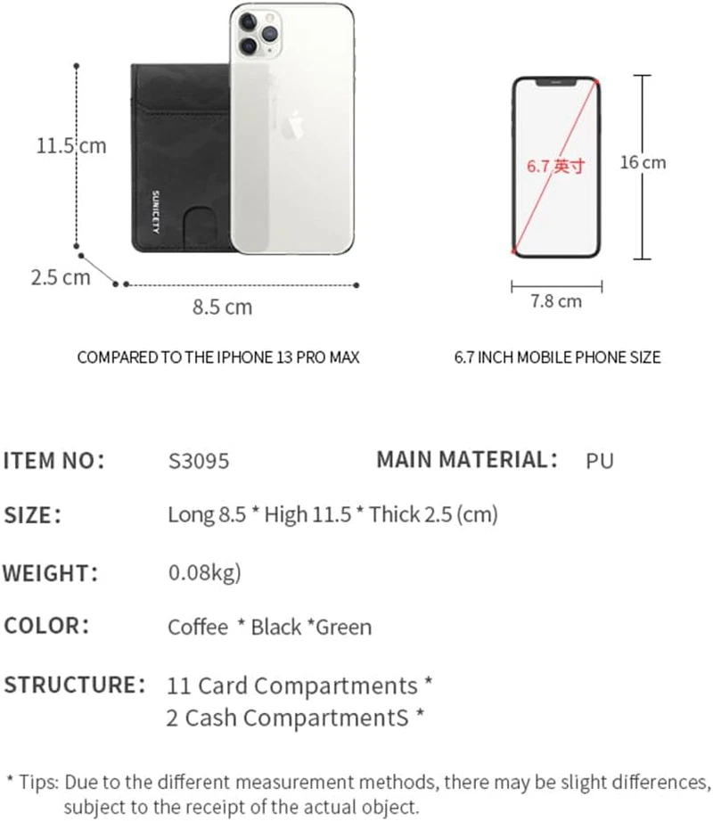 Tuolueop The camouflage wallet measures 4.5x3.3x0.9 inches and has 9 credit card slots, 2 cash slots, 1 ID slot, and 1 driver's license slot. The ultra-thin zip wallet is perfect for carrying in your pocket and is perfect for daily use 【 Convenient Function 】 Card holder wallet the ID window and driver's license window allow quick access during travel or in stores/workplaces, making it easy to carry all important cards to meet all your daily needs. [Protecting Information Leakage]Our card wallet is anti-theft and equipped with advanced RFID security technology, specifically designed to block RFID signals of 13.56MHz or higher and protect valuable information stored on RFID chips from unauthorized scanning 【 Gift 】 It is one of the most special gifts for the groom, birthdays, anniversaries, Father's Day, Christmas, and other special occasions [24/7 after-sales service] If you have any questions or concerns, please contact us. Our reliable customer service will ensure 24/7 availability and provide you with suitable solutions The camouflage wallet measures 4.5x3.3x0.9 inches and has 9 credit card slots, 2 cash slots, 1 ID slot, and 1 driver's license slot. The ultra-thin wallet is perfect for carrying in your pocket and is perfect for daily use