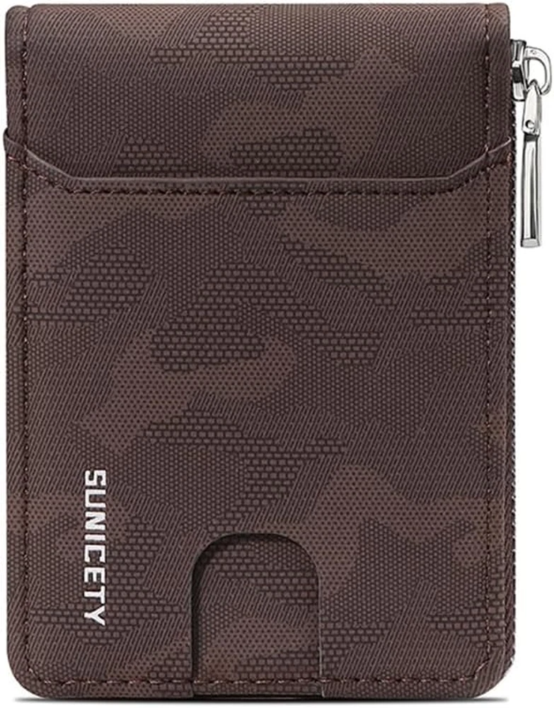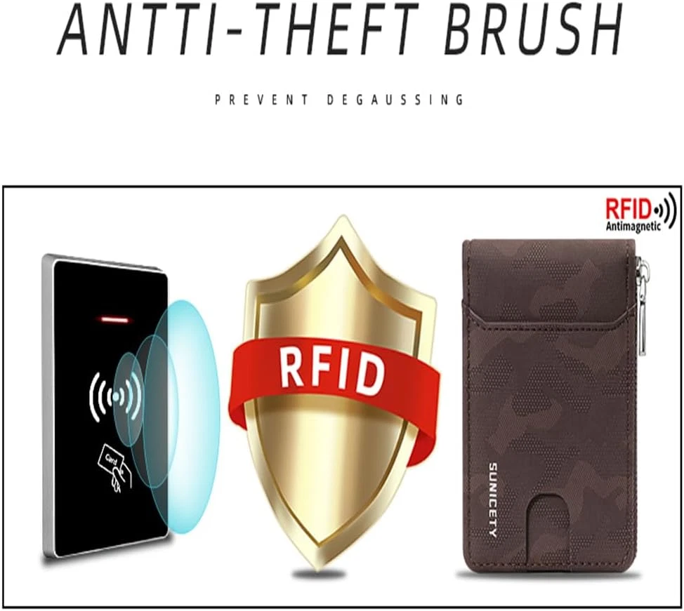 Tuolueop The camouflage wallet measures 4.5x3.3x0.9 inches and has 9 credit card slots, 2 cash slots, 1 ID slot, and 1 driver's license slot. The ultra-thin zip wallet is perfect for carrying in your pocket and is perfect for daily use 【 Convenient Function 】 Card holder wallet the ID window and driver's license window allow quick access during travel or in stores/workplaces, making it easy to carry all important cards to meet all your daily needs. [Protecting Information Leakage]Our card wallet is anti-theft and equipped with advanced RFID security technology, specifically designed to block RFID signals of 13.56MHz or higher and protect valuable information stored on RFID chips from unauthorized scanning 【 Gift 】 It is one of the most special gifts for the groom, birthdays, anniversaries, Father's Day, Christmas, and other special occasions [24/7 after-sales service] If you have any questions or concerns, please contact us. Our reliable customer service will ensure 24/7 availability and provide you with suitable solutions The camouflage wallet measures 4.5x3.3x0.9 inches and has 9 credit card slots, 2 cash slots, 1 ID slot, and 1 driver's license slot. The ultra-thin wallet is perfect for carrying in your pocket and is perfect for daily use