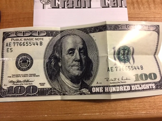 CREDIT CARD TO CASH! This is a very quick flash item, easy to carry in your wallet, and most economically priced. The performer removes a Credit Card (or you can say it is an ATM Card or Debit card) from his/her wallet. In an instant and without any cover the card changes into a large fake (US$ 100.00) currency bill. A real bargain at this low price! Item requires only seconds to reset, and almost works itself. Complete with instructions that give you suitable presentation ideas. Includes instructions, one fake gimmicked credit/debit/ATM card, a jumbo fake bill and vinyl wallet for storage. If you choose, fake items can easily be exchanged for a real credit card and a real bill which you would need to supply as they are not included. Easy to learn - Easy to perform BONUS - receive combined shipping discounted rates when you purchase multiple items (same or different products) from us at the same time! The discount will be a refund to you when your order is processed! Packaging may vary. Restrictions may apply. Not responsible for use or misuse of this or any other product. Photographs and/or video are for demonstration purposes only. Colors of actual product may vary due to differences in screened devices. If our Terms Of Service (TOS) isn't visible from this listing, please review it on our About " m e " page before ordering. We believe in fast shipping, handling and processing of our orders. Consequently, we are not responsible for merchandise shipped to an incorrect address. We will only ship to the address listed and will not ship to alternate addresses. Many of our items are shipped the same or next business day.* * Exceptions may occur due to circumstances beyond our control (e.g. holidays, after hour purchases, postal delivery strikes, etc.). Business days are Monday - Friday. We can accept payments through PayPal. Not a member of PayPal? No problem. Just click on "continue" on the PayPal page instead of signing in. At that time just enter your credit card information. This is encrypted, therefore we cannot view any of your credit card information, nor does PayPal retain it. Payments are expected within seven (7) days from the end of the auction. Unpaid item (UPI) complaints may be filed with eBay upon not receiving payment within that time frame. International Buyers: We ship worldwide, therefore, it may take longer for shipments to arrive depending on where you are located outside of the United States. We primarily ship by USPS unless otherwise indicated in the item listing. Import duties, taxes and customs fees are not included in the item or shipping price. These charges are the buyers responsibility and are usually collected by the delivering shipping company, or when you pick up the item. Please do not confuse these charges for additional shipping charges from Long's Superstore. Prior to ordering or bidding, please contact your country's customs office to determine what these additional charges will be, if any. Also, unless it is a gift, we do not mark merchandise as a gift, or below value. Long's Superstore offers many different items for purchase. Many of our items (except for magic trick items*) are refundable as follows: If you receive an item (or items) and you are dissatisfied for any reason, please contact us within 30 days via email requesting a refund. We will issue you a Return Merchandise Authorization number (RMA) via return email. Package your return(s) including the RMA number and ship the product back to us postmarked within 5 business days after receiving the RMA number. The product must be in a resalable condition and in the original packaging. After we receive the item we will promptly refund your purchase price. The buyer must pay for return shipping. If any item is defective, we will replace the merchandise for the same item, or offer a refund, after the merchandise has been returned. In an effort to control inventory properly, returns without a RMA number will not be accepted. If the item is no longer available, we will issue a merchandise credit or refund at your request. *Magic Trick items are generally non-refundable. As a rule with any magic trick, the purchase price is for: the performance rights; the instructions which include the "secret" of the effect; and possibly any props necessary to perform the effect if not easily obtainable. However, if the product is defective, we will exchange it for the same item. Simply follow the return policy listed above. In addition, most media (since it can be duplicated) is non-refundable. The particulars will be listed on each individual listing if the item is refundable or not. We take feedback very seriously. If you like our service, please tell a friend about us. However, If you are dissatisfied for any reason, please tell us and give us an opportunity to correct the problem before you choose to leave negative, neutral, or soft positive feedback. After you receive your item and everything is satisfactory, please leave us positive feedback and a 5-star detailed seller rating (DSRs), if we earned it. At that time, we will leave you positive feedback, regardless of what type of feedback we received. We want to earn your trust and repeat business. Finally, in an effort to protect the seller and buyer, we utilize disclaimers throughout many of our product descriptions. Here is another one... images, video and text are reproduced with permission from the copyright owners. Many images, video and text are in public domain and have been used freely without copyright infringement. In addition, some images, video and text are by Long's Superstore and may not be used without permission.