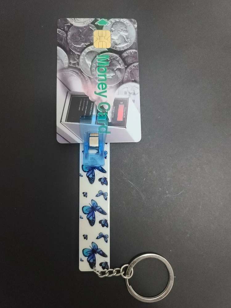 Butterfly-Credit card grabber for long nails. Card Grabbers (Long Nail Problems ) Stop struggling at the ATM and Gas Pump to pull the card back out. Keep the long nails of course. Just lose the struggle. I have multiple designs as pictured