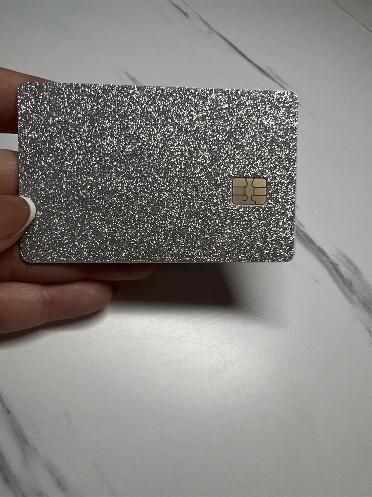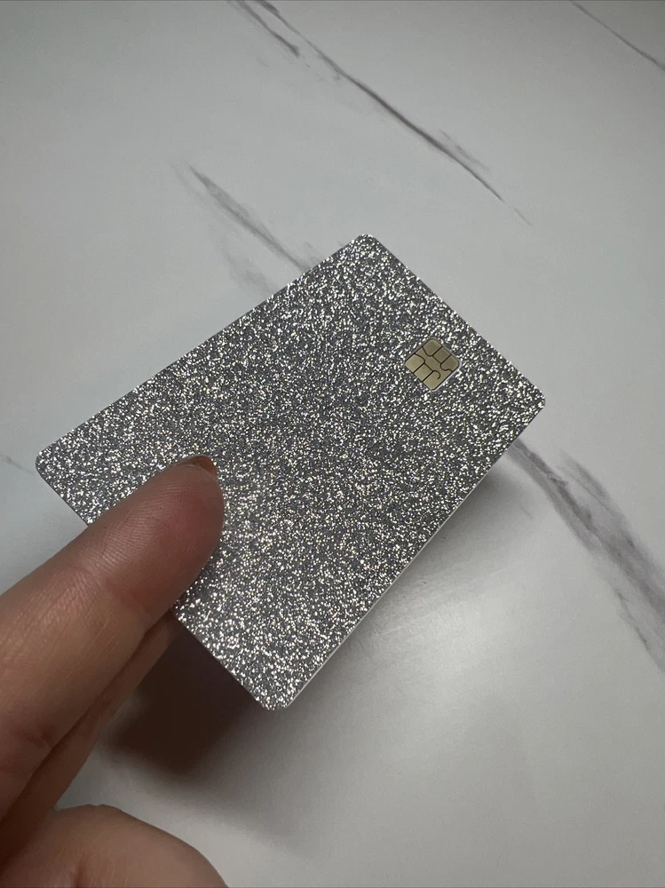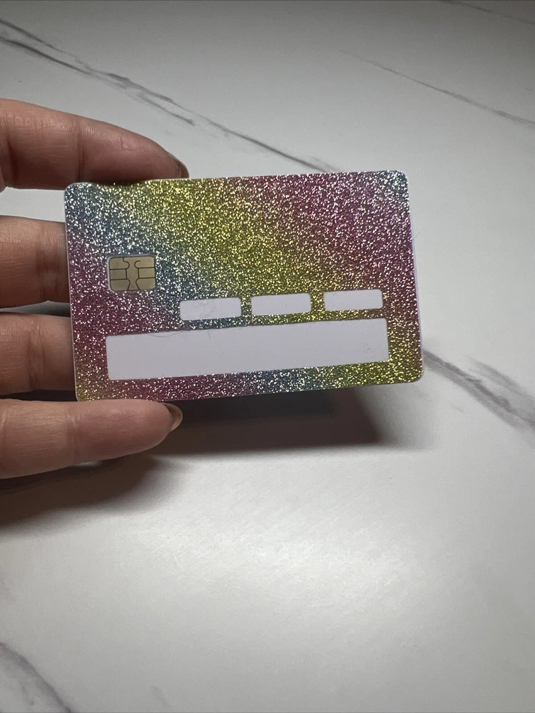 **Dress up your credit card!! Pick if you want the chip only cutout or a cutout for your name, and card number. **Highest quality **Glitter Skin. Does not rub off. **Just place over your existing card face or peel your old card sticker off and replace. **Ultra thin to work in machines. Some of the newer machines may have a little trouble inserting the glitter card. But they do work!