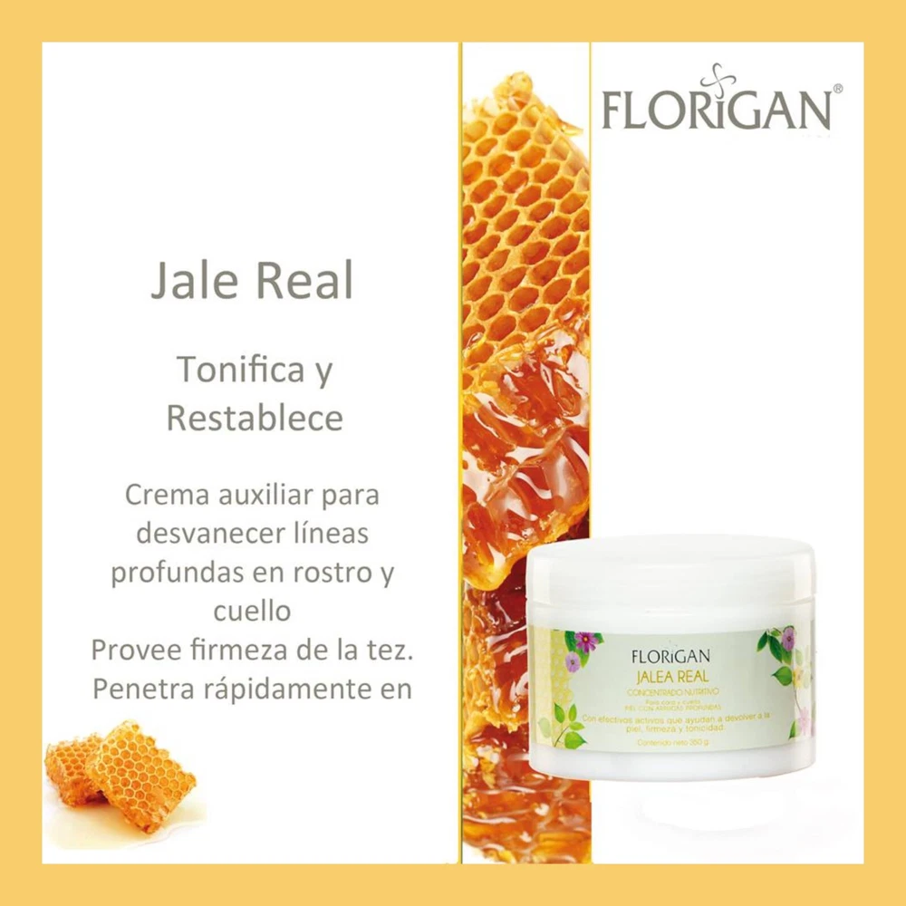 Este fluido natural elaborado por las abejas, es considerado desde la antigüedad como un elixir para la juventud. Otorga vitalidad y nutrición a la piel y es muy efectivo para contrarrestar los signos de la edad. CONCENTRADO NUTRITIVO Jalea Real Piel con arrugas profundas Tonifica y restablece Crema auxiliar para desvanecer líneas profundas en rostro y cuello. Provee firmeza a la tez. Penetra rápidamente en la piel. Otorgándole hidratación, suavidad, oxigenación y un estado saludable. 350ml. Ingredientes naturales que contienen beneficios incomparables. Las propiedades esenciales de la placenta fortalecen, brindan elasticidad a la piel y ayudan a eliminar arrugas. La concha nácar es un excelente regenerador para el cutis. Cutis marchito Protege y devuelve la humedad Intensiva y prolongada provisión de humedad. Ayuda a evitar la presencia de manchas y pecas. Previene el envejecimiento. Retira gradualmente arrugas y líneas de expresión. Unifica el tono de piel. Reanima, repara y protege de los rayos solares. 350g.