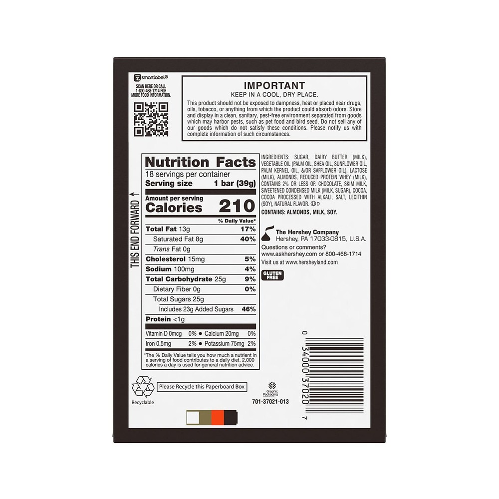 Contains eighteen (18) 1.4-ounce Crisp Butter Toffee and Chocolate Candy Bars in a bulk box Treat yourself to crisp butter toffee drenched in delicious chocolate candy after work, while running errands, enjoying movie nights or spending time with the family Individually wrapped, kosher and gluten free chocolate and toffee candy bars with distinctive flavors Use candy for filling birthday gift bags and back-to-school lunch boxes or bridal and baby shower candy dishes A duo of creamy chocolate and crunchy butter toffee perfect for Valentine's Day, Christmas, Halloween and Easter candy bowls