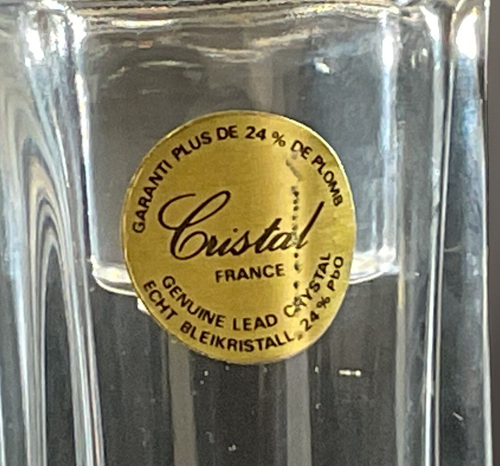 Cristal Genuine Lead Crystal Decanter w/ Stopper. 24% PbO. Made In France. Very good preowned vintage condition. Please see photos for additional details and measurements.