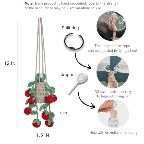 Menu 1. We require immediate payment. 2. We currently accept payment via eBay managed payments only. 3. Once payment is cleared, we will dispatch your shipment within 1-3 business days. Please refer to the "Shipping" tab for more information regarding shipping speed to your destination. Crochet Car Air Freshener,12ml Empty Refillable Car Diffuser Bottle with Cute Potted Plants Car Mirror Hanging Accessories Car Air Hanging Fragrance Oil Diffuser,Car Accessories for Women(Raspberry) Product description 【Design】Adopting the design of potted raspberry,It seems as if you have truly planted a pot of cuties in the car, creating an instant natural and fresh feeling. Every time you drive, you can sense the fullness of greenery and aroma, and your mood instantly improves. 【Dual Functionality】This cute car air freshener combines a crochet pouch with a car diffuser bottle in a cute potted Raspberry design, creating a natural feel. You can enjoy the fragrance of oils while decorating your car. 【Handmade】Each car air freshener pouch is handwoven with care, without using any glue for fixation, which enhances its durability and safety.Every stitch and thread embodies the artisan's efforts and emotions. 【Protective Features】This car air freshener diffuser pouch is crocheted with double-layer cotton yarn. This design is great for protecting the oil bottle and preventing damage to your car. Keep your car journey safe! 【Personalised Car Scent】You can add different oils according to your personal preference to create a unique scent. Get in the car and you'll be surrounded by a familiar and unique scent that relieves driving fatigue and keeps you awake and relaxed! PLEASE MESSAGE US IF YOU HAVE ANY OTHER QUESTIONS, AND MANY THANKS FOR READING ALL OF THIS. Copyright ©#. All Rights Reserved.