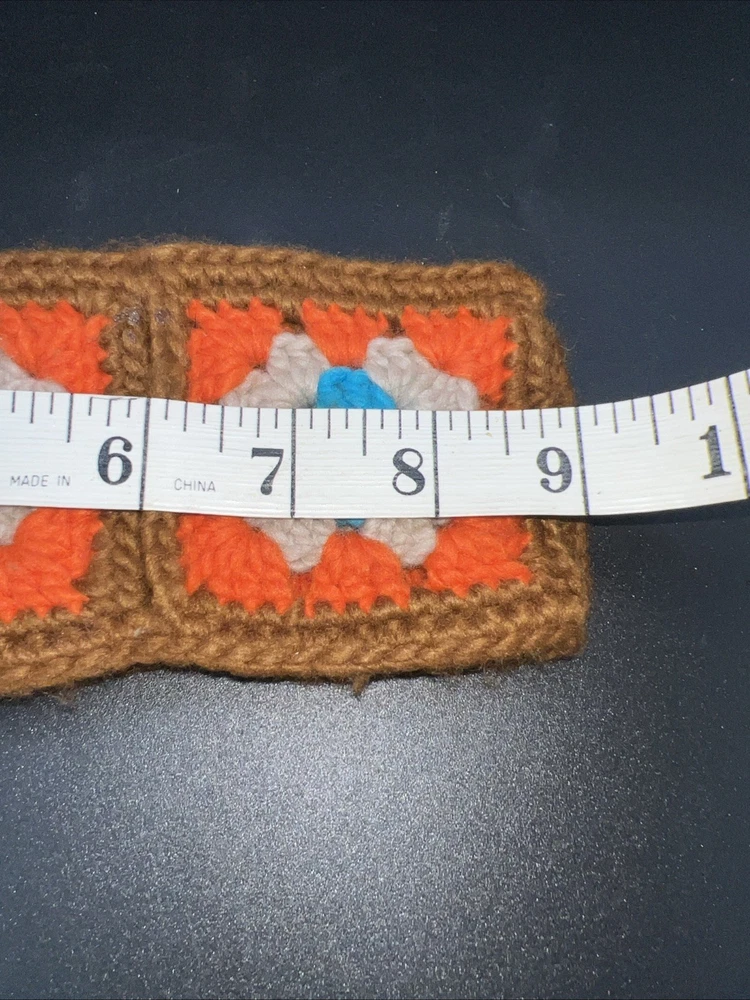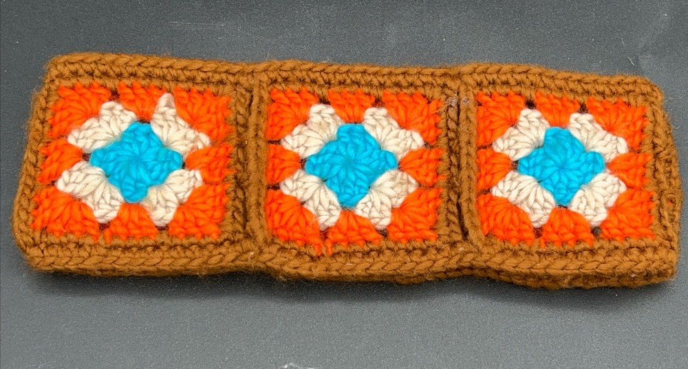 Headband Crochet Granny Square Pattern Ear Warmer Bandeau Hair Band BOHO Hippie Brown Orange Tan Blue 18”