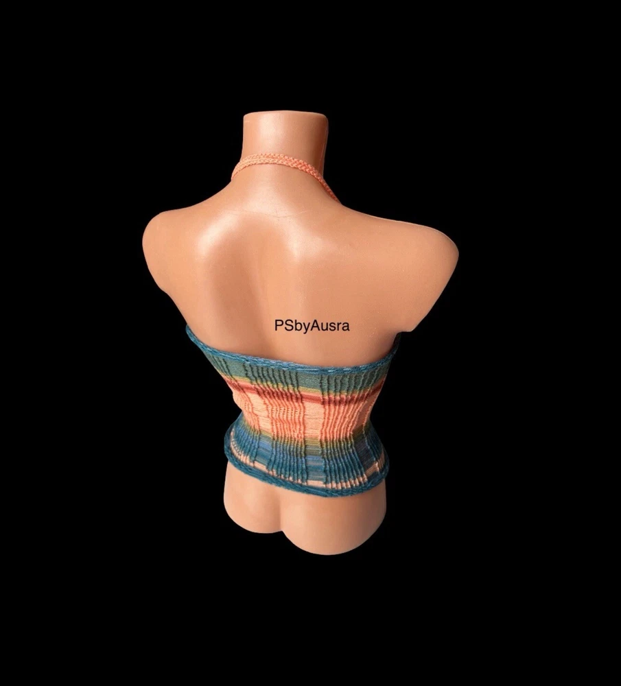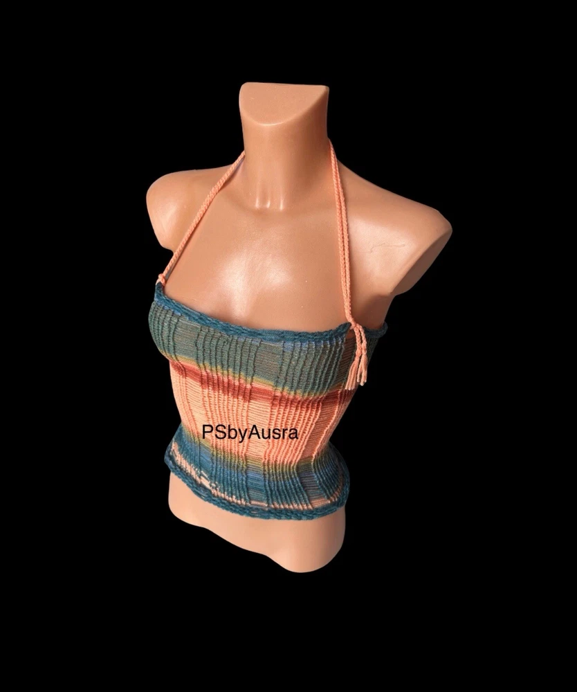 Pattern: No Pattern Size Type: Regular Accents: Crochet Style: Basic Closure: Tie Sleeve Length: Sleeveless Neckline: Halter Colour: Multicoloured Season: Autumn, Spring, Summer Fabric Type: Crochet Character: Happy, Hippie Department: Women Occasion: Casual, Party/Cocktail, Travel Fit: Classic Size: S Strap Type: Halter Material: Acrylic Brand: Handmade Sleeve Type: Strappy Sleeve Theme: 90s, Beach, Hippie, Outdoor, Festival, Fun, Happy, Modern Vintage: Yes Handmade: Yes Features: Adjustable Strap Type: Tank