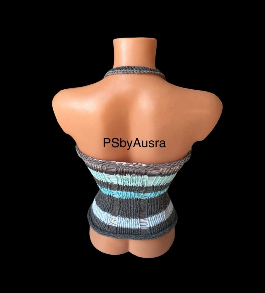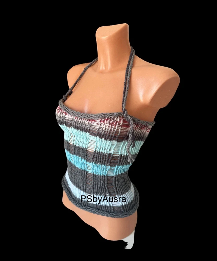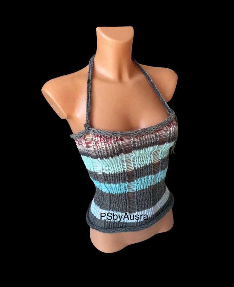 Accents: Crochet Vintage: Yes Size: S Sleeve Type: Strappy Sleeve Size Type: Regular Material: Acrylic Style: Basic Character: Happy, Hippie Closure: Tie Occasion: Casual, Party/Cocktail, Travel Season: Autumn, Spring, Summer Colour: Multicoloured Features: Adjustable Strap Sleeve Length: Sleeveless Brand: Handmade Fit: Classic Strap Type: Halter Department: Women Neckline: Halter Handmade: Yes Theme: 90s, Beach, Hippie, Outdoor, Festival, Fun, Happy, Modern Fabric Type: Crochet Type: Tank Pattern: No Pattern