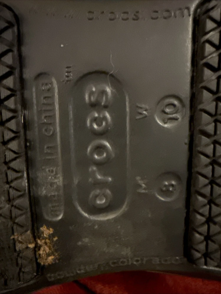 The product is a pair of Crocs Bistro Clogs designed for unisex adults, with a slip-on style and featuring the Croc's Lock slip-resistant tread. These colorful clogs are in a multicolor design, suitable for both men and women with a US shoe size of 10 for women and 8 for men. The shoes are made of synthetic material and are ideal for casual wear, specifically created to provide comfort and safety in work environments like kitchens or restaurants.