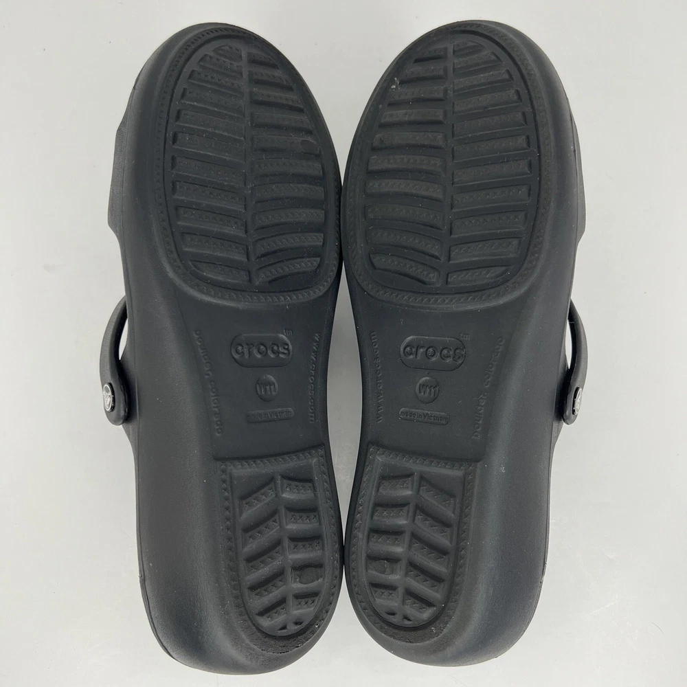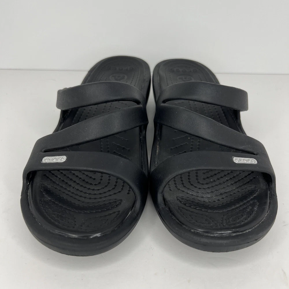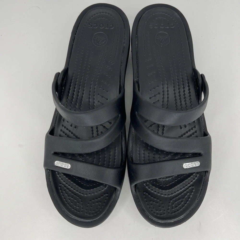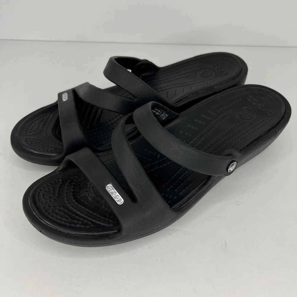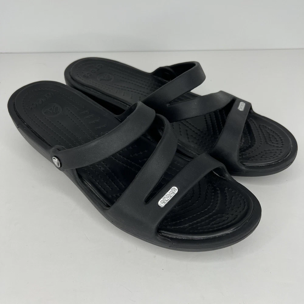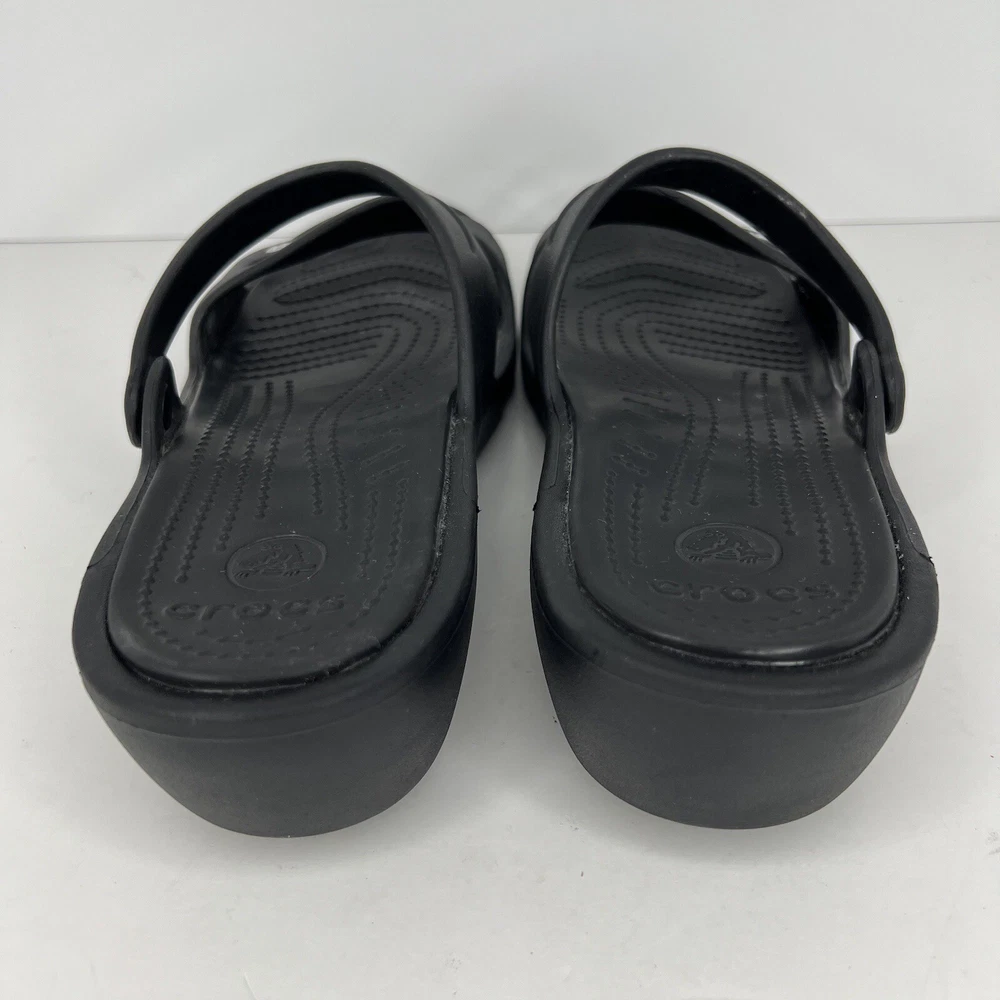 Step up your shoe game with these Crocs Patricia Wedge Sandals in classic black. Designed with a slip-on closure, these sandals are perfect for travel, activewear, casual outings, and workwear. The wedge heel offers a mid-height boost, while the strappy style and logo accents add a touch of flair. Crafted with rubber outsole and upper and insole material, these sandals feature cushioning that'll keep you comfortable all day long. Plus, they're lightweight, breathable, and suitable for all seasons. Get your hands on these Crocs Patricia Wedge Sandals in size 11, from the Crocs product line. 100% CUSTOMER SATISFACTION IS OUR GOAL! Our items are always carefully examined for condition, measured if necessary, and photographed in a climate controlled and smoke-free environment. We make every attempt to accurately describe and clearly picture the items we have for sale. Please, ALWAYS view all of the photos. We value your business and our goal is your complete satisfaction. FAST SHIPPING All items are packaged with care and shipped out the same or next business day via USPS, FEDEX, or UPS with tracking numbers so you are always informed. RETURNS We offer a 30-day return policy. All items must be unused and unopened in the condition in which they were received, with original packaging, and all accessories included for return. REVIEWS - CUSTOMER SATISFACTION - COMMUNICATION We aim to make you happy. After you receive your shipment, please leave a positive review . If you have concerns or questions about your order, please contact us so we can resolve the issue. We will do our best to make you satisfied. THANK YOU FOR YOUR BUSINESS!