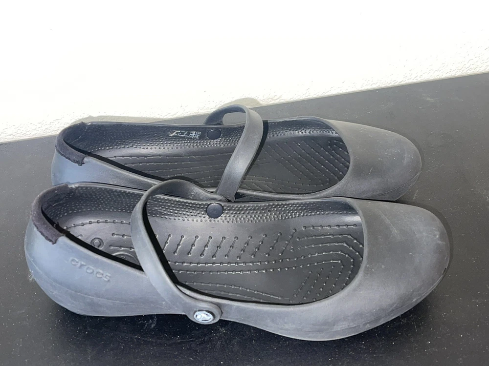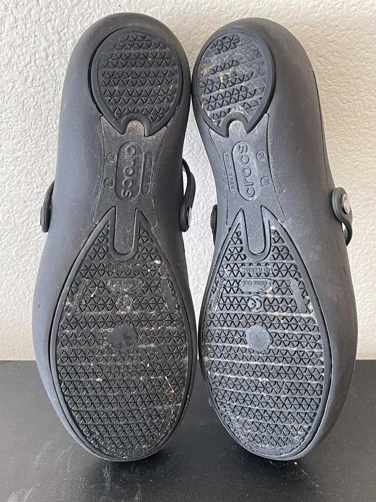 Indulge in comfort with these stylish Crocs black slippers for women, available in size 10. The slip-on design features a round toe shape and flat heel height, perfect for all-day wear. The solid pattern and rubber upper and outsole material make these slippers durable and long-lasting. Ideal for lounging around the house, these Crocs slippers offer a relaxed fit with a comfortable rubber sole. The black color and sleek slip-on style make them a versatile addition to any wardrobe. Step into these women's slippers and experience both fashion and comfort.