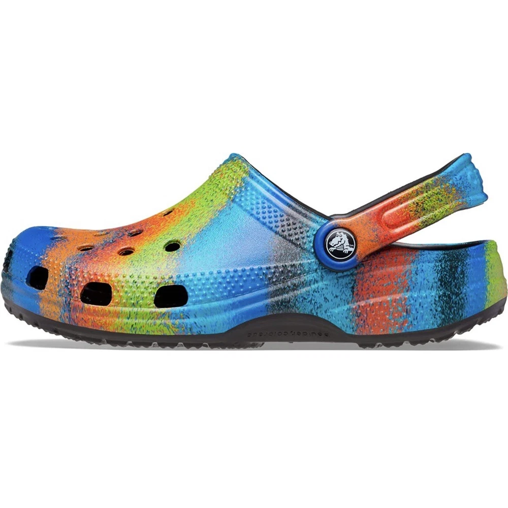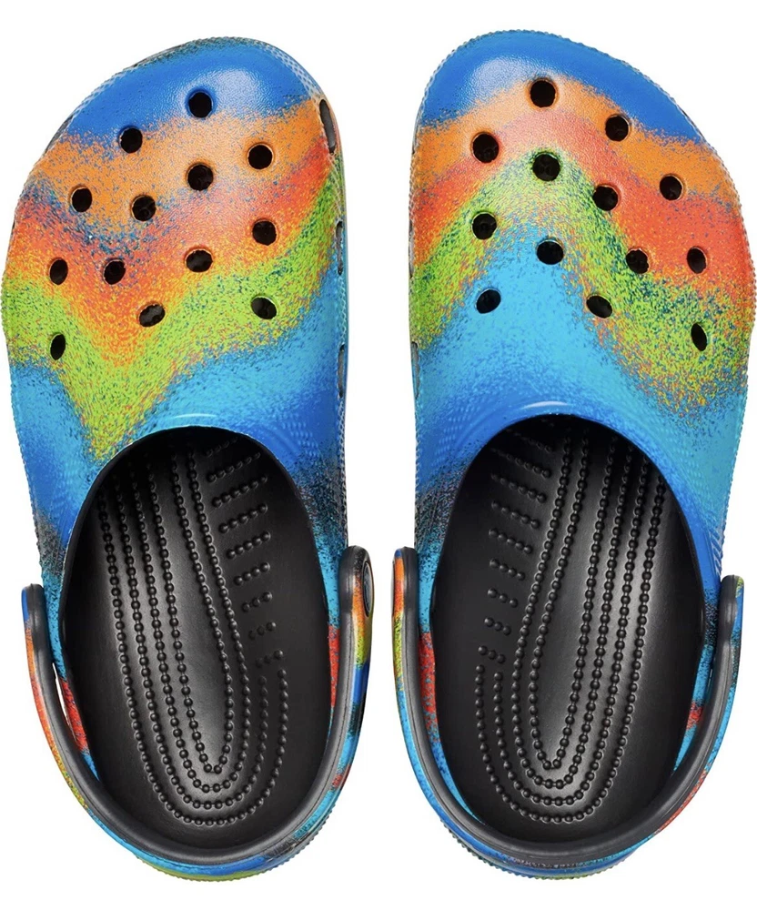 Crocs Classic Clog Slip Ons Spray Dye Multicolor Black Men’s Size 10 - Womens 12