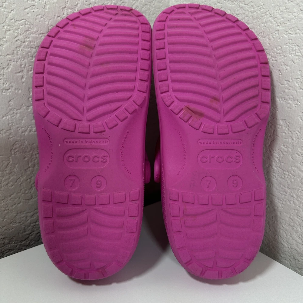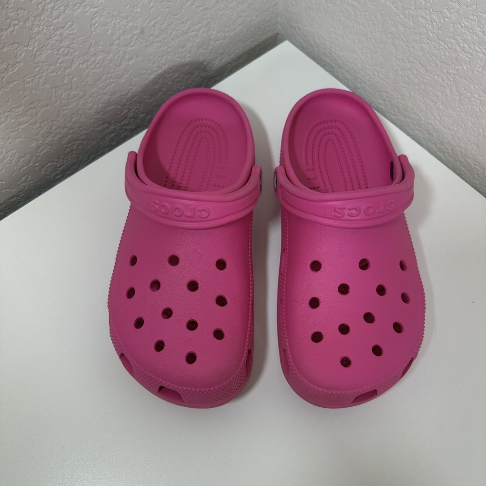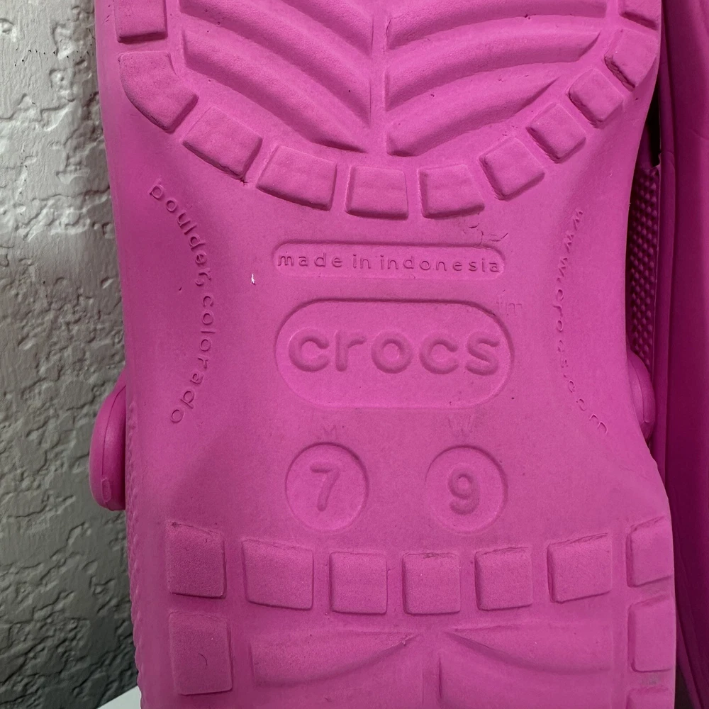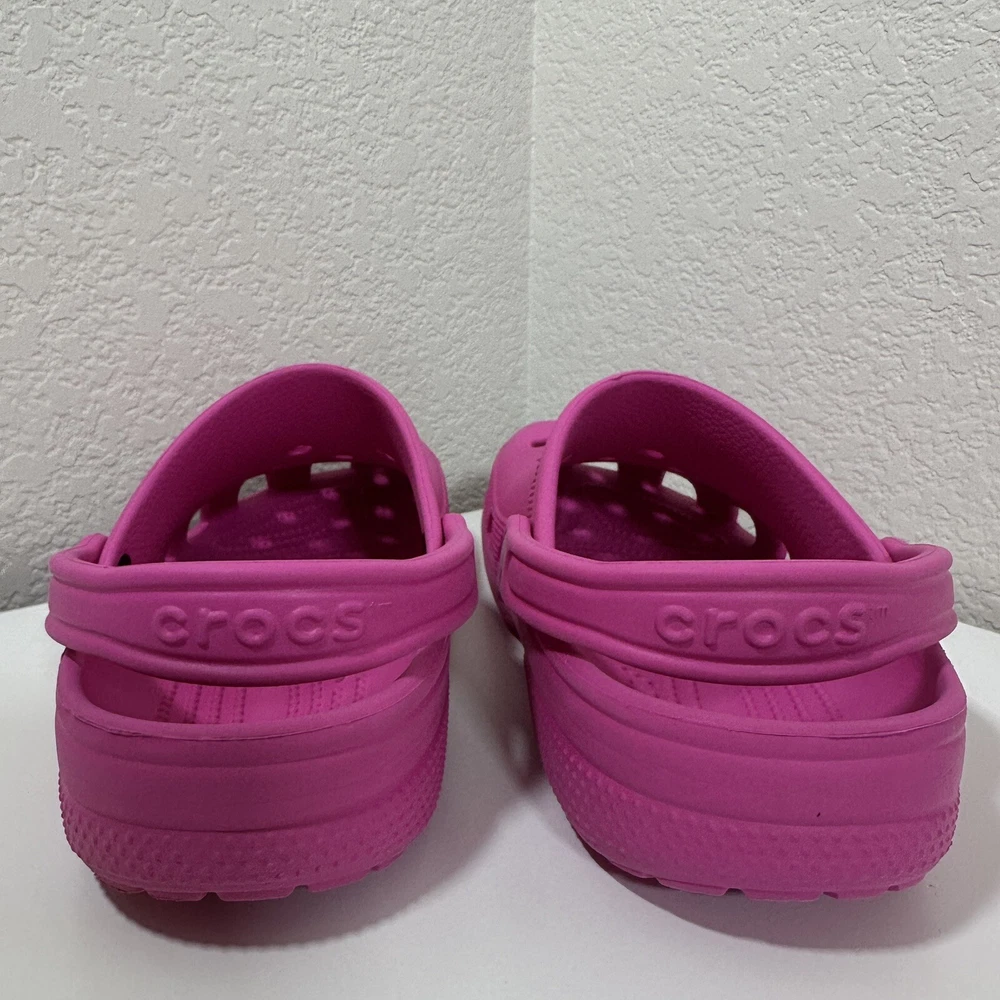 Crocs Classic Clogs Magenta Pink Unisex Christmas Hanukkah Womens Size 9 Mens Size 7 Pre-loved & in great used condition. Some minimal staining on bottom soles. See photos for close ups. Freshly cleaned/sanitized & ready to ship!