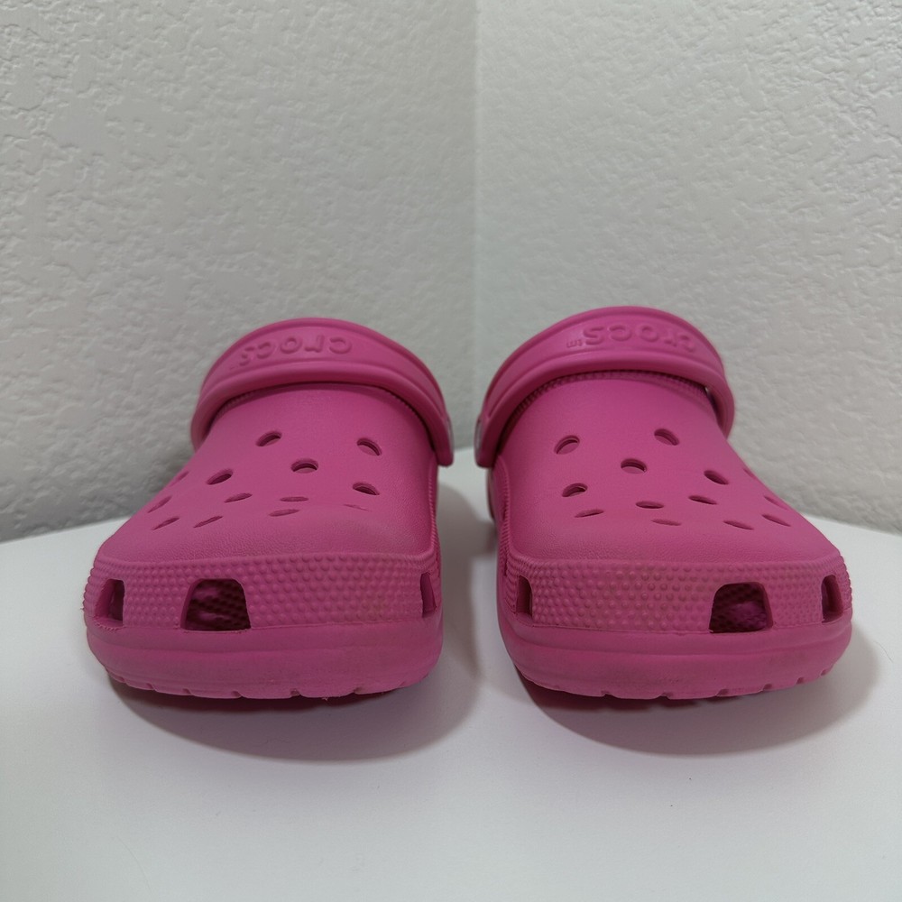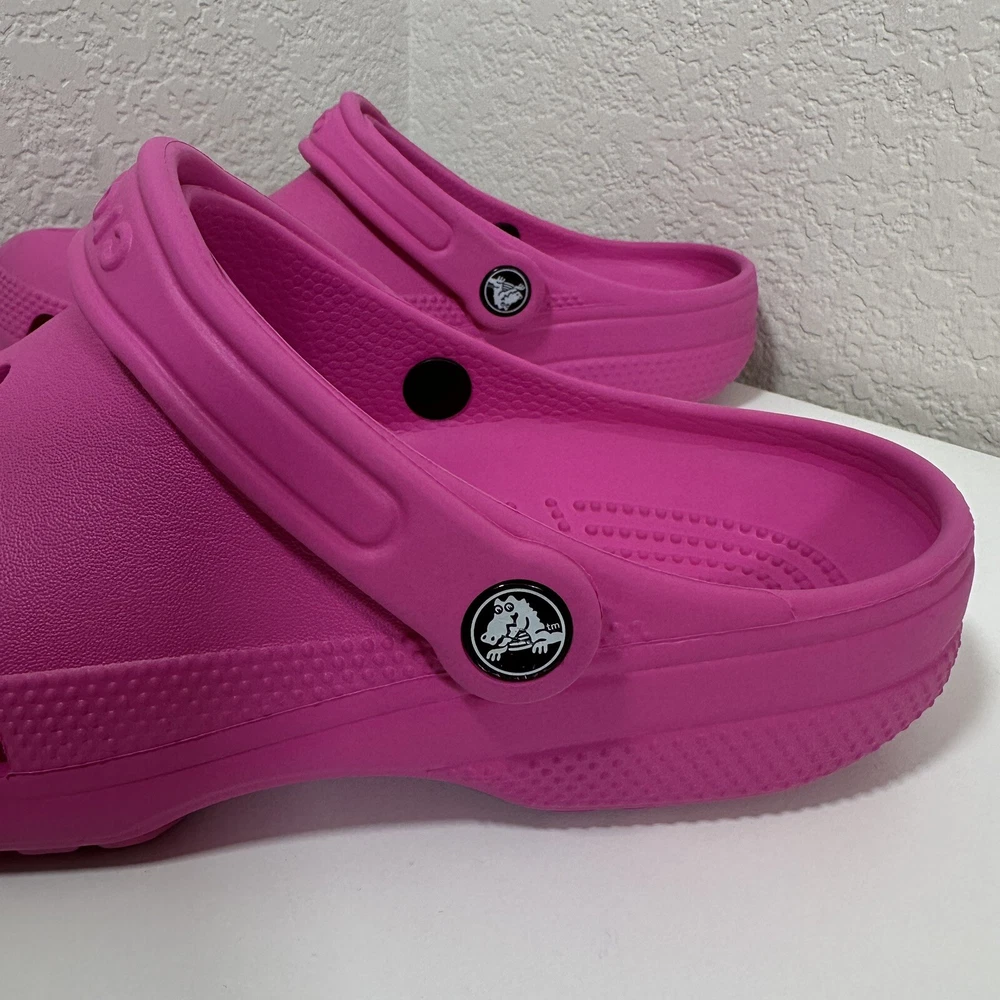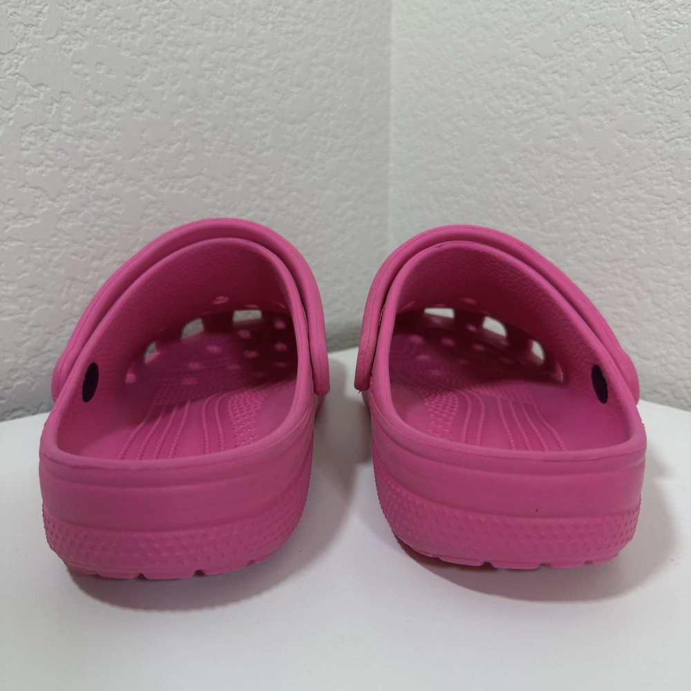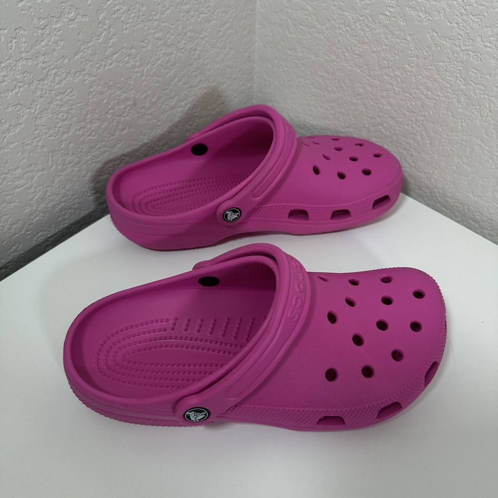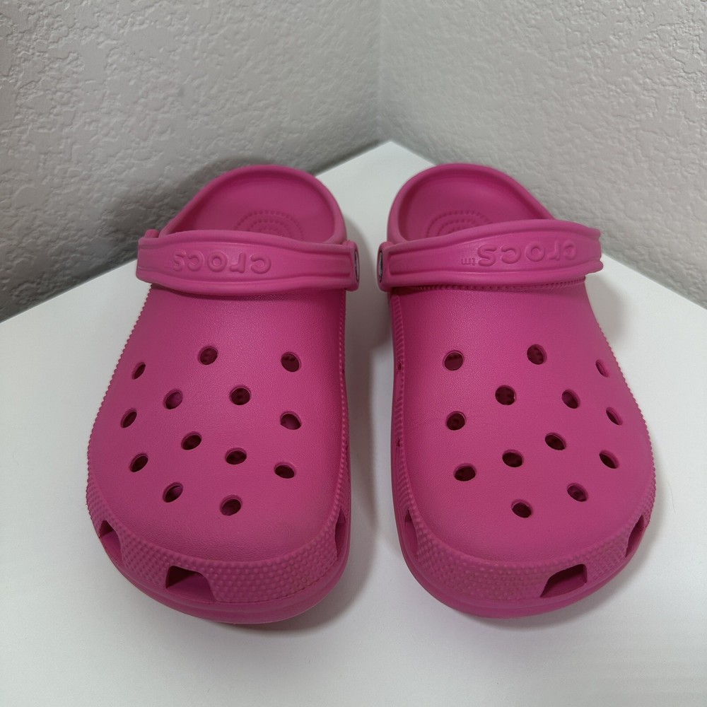 Crocs Classic Clogs Magenta Pink Unisex Christmas Hanukkah Womens Size 9 Mens Size 7 Pre-loved & in great used condition. Some minimal staining on bottom soles. See photos for close ups. Freshly cleaned/sanitized & ready to ship!