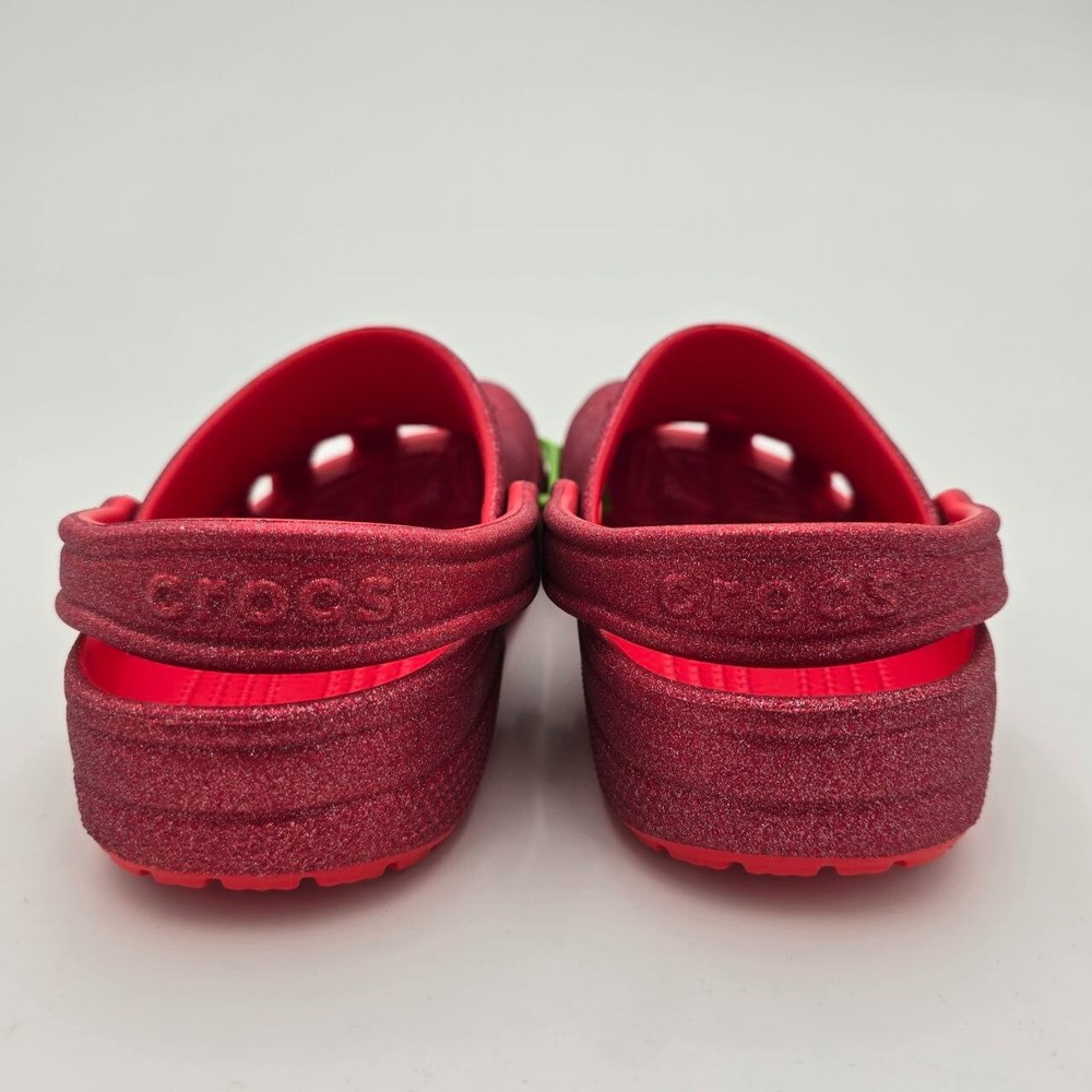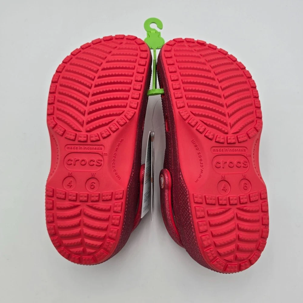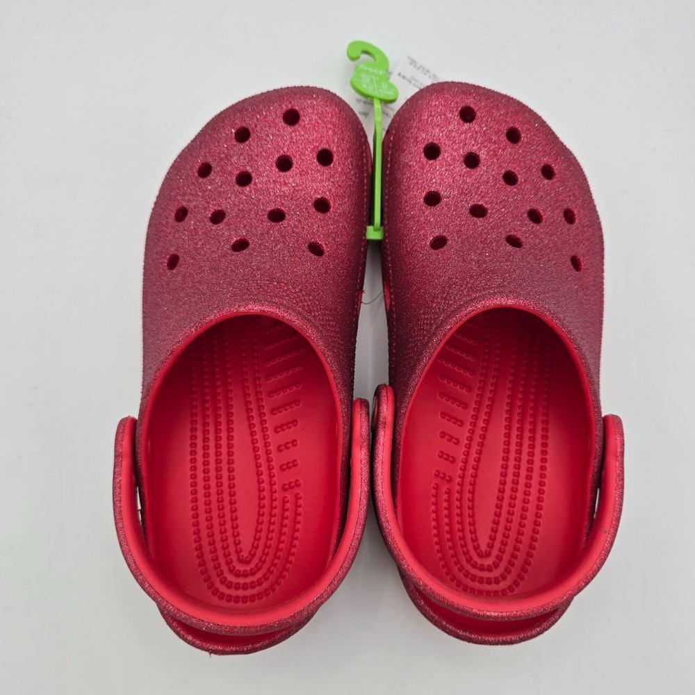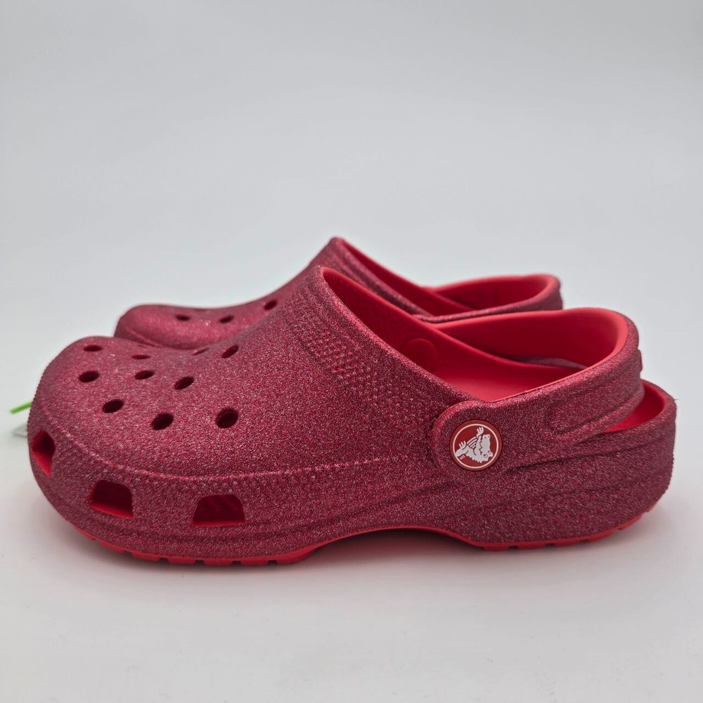 Experience everyday comfort with the Crocs Classic Glitter Clogs, perfectly crafted for girls who value both style and comfort. These vibrant red clogs are designed with a round toe and a convenient slip-on style, making them ideal for quick outings, travel, or casual wear. The glittering upper material adds a touch of sparkle to any ensemble, while the synthetic construction ensures durability and ease of care. Designed for versatile use, these clogs are suitable for a range of activities from beach visits to walking and school routines. The lightweight design, coupled with a cushioned insole and breathable lining, provides a comfortable fit that's perfect for wearing throughout the day. With their solid pattern and subtle ankle strap feature, these Crocs blend fun with functionality for any season.