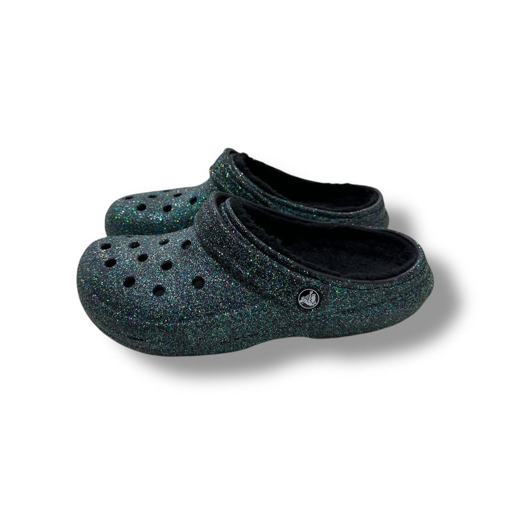 Crocs Classic Glitter Fleece Lined Clogs Blue Unisex Men 7 Women 9