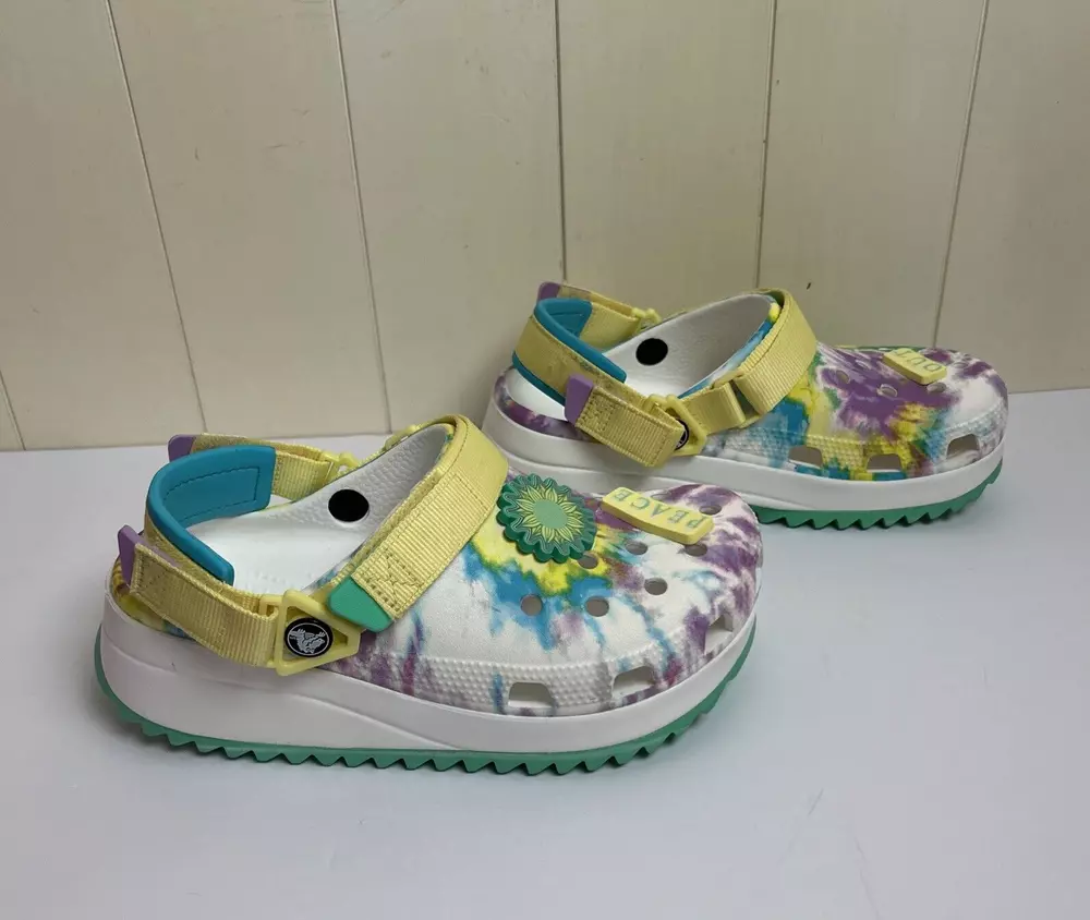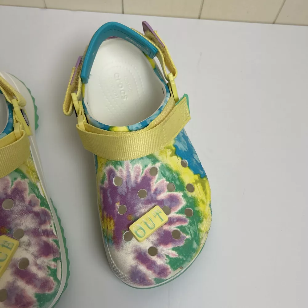 Crocs Classic Hiker Peace Out Platform All Terrain Clogs in Tie Dye - Woman's 7 Men's Size 5 - Women's Size 7. Excellent Preowned Condition. Worn 1-2X.